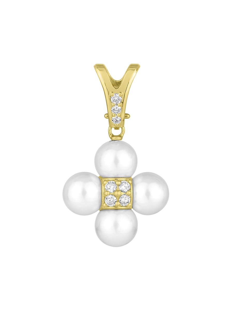 From the Sequence Collection. Paul Morellis striking charm features four radiant Akoya cultured pearls surrounding a center of diamond pav in a sweet floral shape. Diamonds, 0.26 tcw Diamond color: F Diamond clarity: VS Akoya cultured pearls, 8mm 18K yellow gold Made in USA SIZE Drop, about 0.79. Fine Jewelry - Fine Designer Jewelry C > Paul Morelli > Saks Fifth Avenue > Barneys. Paul Morelli. Color: Yellow Gold.
