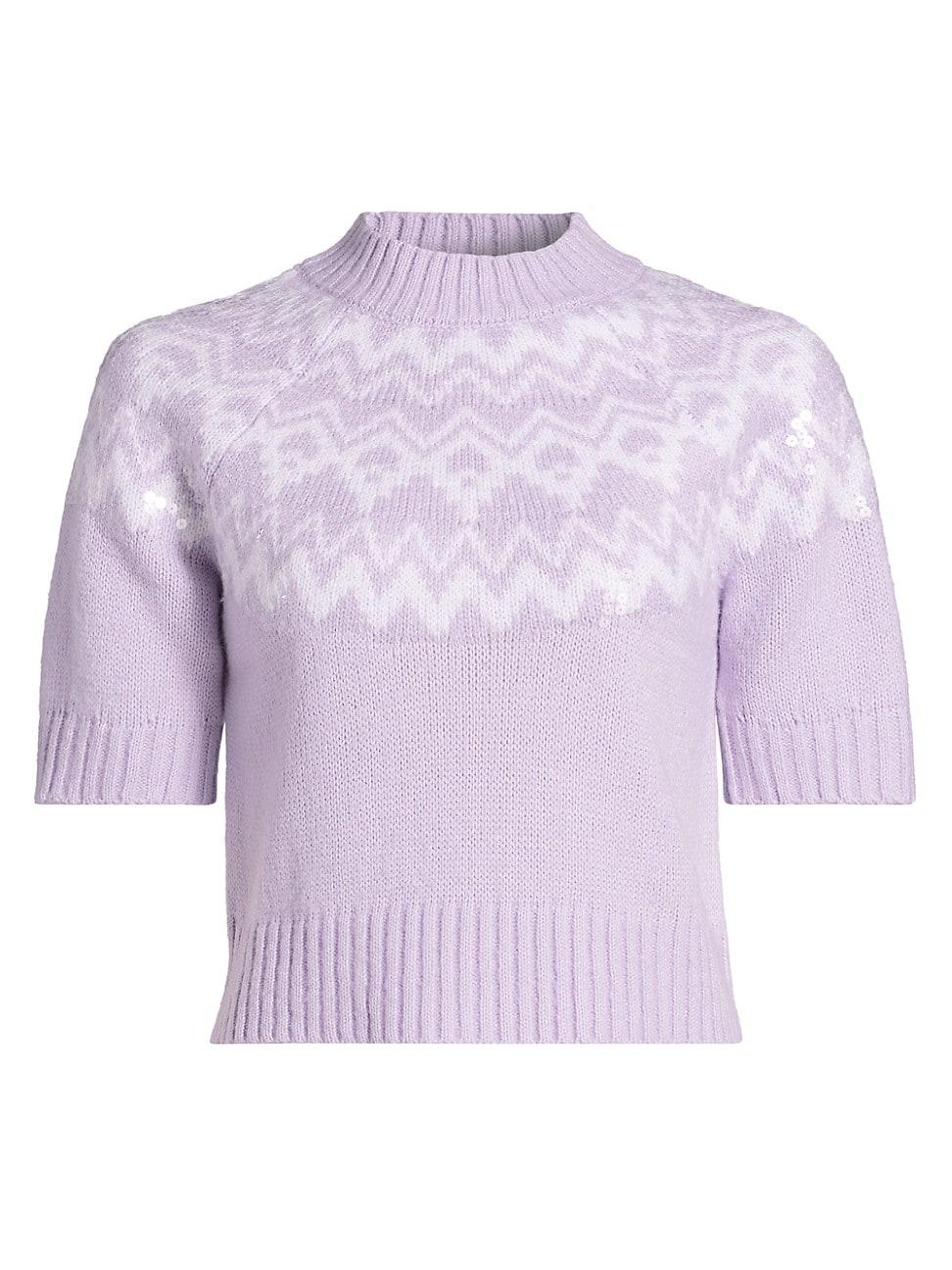 This Fair Isle-inspired sweater from Design History is embellished with lustrous tonal sequins. Mock turtleneck Short sleeves Rib-knit trim Pulls over 75% acrylic/25% polyester Hand wash Imported SIZE & FIT About 21 from shoulder to hem Model measurements: 510 tall Model is wearing a US size Small. Contemporary Sportswear - Trend > Design History > Saks Fifth Avenue > Barneys. Design History. Color: Icy Lilac Combo. Size: Medium.