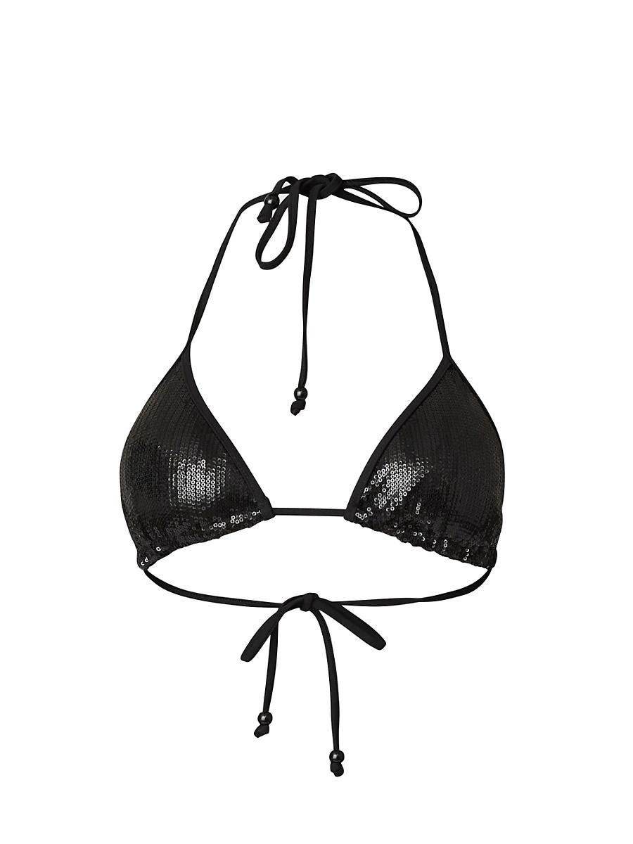 This triangle bikini top from Shoshanna is designed with lustrous sequins and beaded selt-tie straps. V-neck Halter tie straps Back tie closure 95% polyester/5% spandex Lining: 95% polyester/5% spandex Hand wash Made in USA SIZE & FIT Model measurements: 510 tall Model is wearing a US size Small Please note: Bikini bottom sold separately. Outerwear And Swimwear - Contemporary Swim > Shoshanna > Saks Fifth Avenue > Barneys. Shoshanna. Color: Jet. Size: Medium.