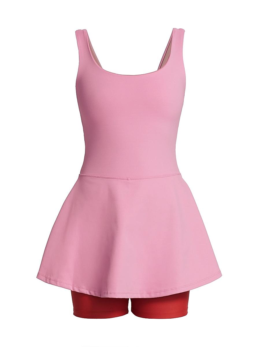 The sleeveless Serena romper features a plunging scoop neckline and a layered, flared skirt. Plunging scoopneck and scoopback Sleeveless Shorts lining Pulls on 78% polyamide/22% elastane Combo: 82% polyamide/18% elastane Hand wash Imported SIZE & FIT Rise, about 10 Inseam, about 6 Leg opening, about 14 Model measurements: 510 tall Model is wearing a US size Small. Contemporary Sportswear - Casual Separates > Maqui Active > Saks Fifth Avenue > Barneys. Maqui Active. Color: Pink. Size: Medium.