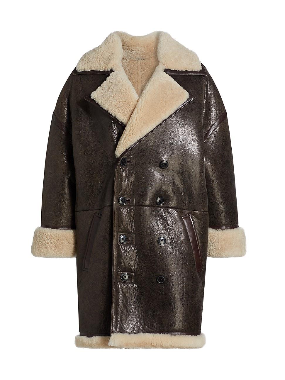 This Frame double-breasted cocoon coat is crafted of sleek leather and styled with soft shearling trim. Notch lapels Long sleeves Side slip pockets Button-front closure Leather Dry clean Imported SIZE & FIT About 37 from shoulder to hem Model measurements: 510 tall Model is wearing a US size Small ABOUT THE BRAND In 2012, Erik Torstensson and Jens Grede combined their California-modern point of view with a European sensibility to establish Frame. The ready-to-wear label, first known for its denim, has expanded to leather, cashmere and tailoring-all with an effortless ethos at the core. Focusing on quality fabrics and foundational dressing, the brand delivers chic everyday staples favored by Hollywood starlets and beyond. Contemporary Sportswear - Denim And Bottoms > Frame > Saks Fifth Avenue > Barneys. Frame. Color: Cardamom. Size: XS.