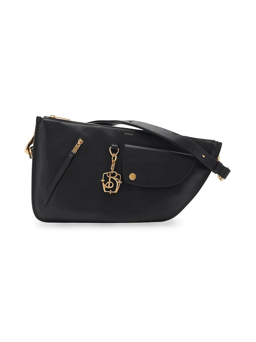 This Shield Twin-Slot bag from Burberry is crafted of luxurious leather. Adjustable strap Leather Lining: suede Trim: brass Made in Italy SIZE About 16.9W x 9.8H x 2D Adjustable strap: about 11.4-19.3 drop ABOUT THE BRAND Founded in 1856 by 21-year-old Thomas Burberry, the brand set out with a mission to stylishly protect against British weather-and Burberrys iconic trench coat was born. In the 1920s, its renowned check pattern was introduced as the coats lining. Today, under Creative Director Daniel Lee, the heritage brand continues to evolve and create timelessly classic mens, womens and kids pieces, along with beauty. Handbags - Burberry Handbags > Burberry > Saks Fifth Avenue > Barneys. Burberry. Color: Black.