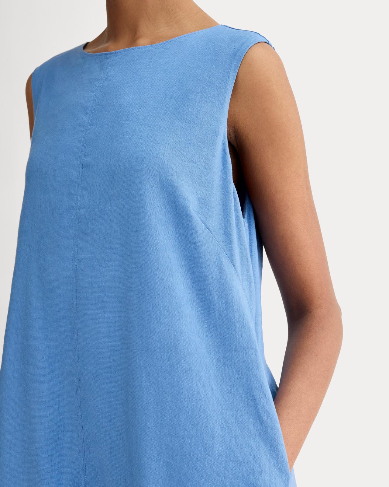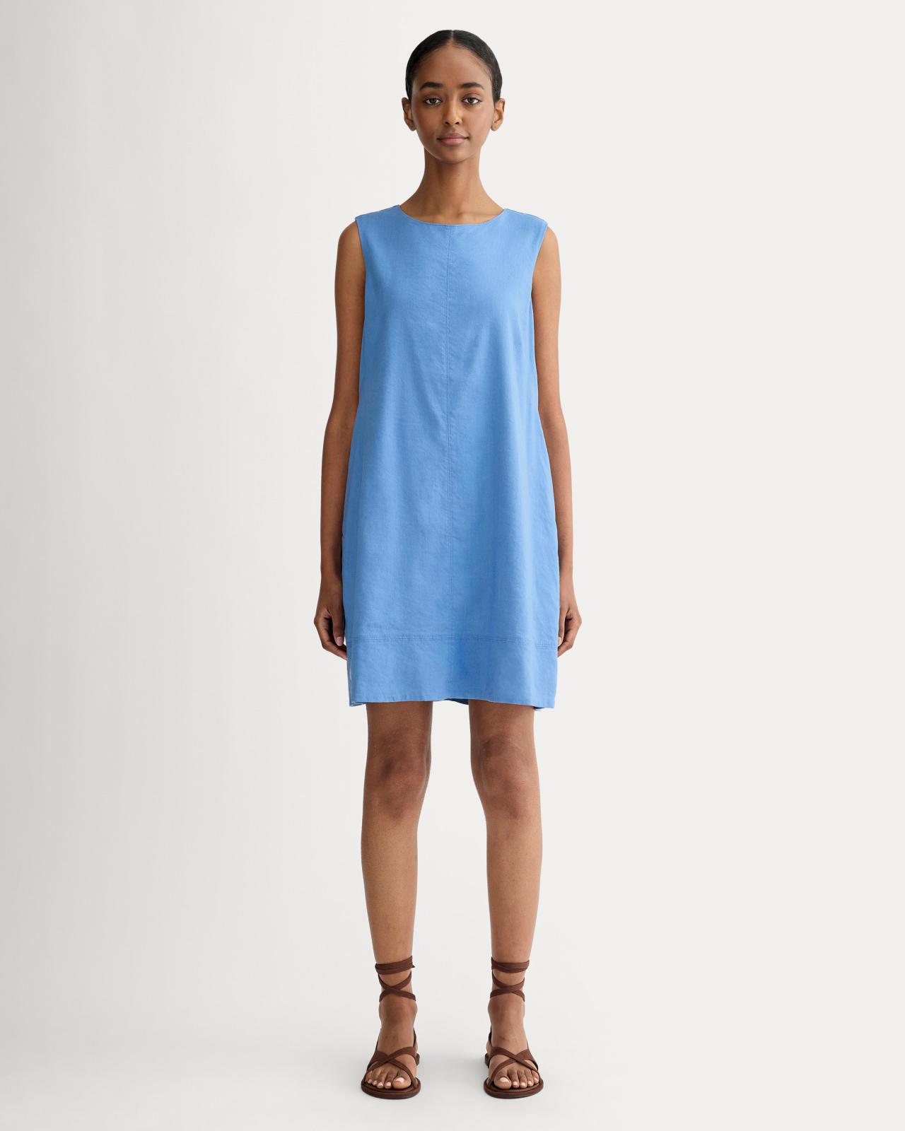Summer plans? Youre all set in this sleeveless mini shift dress. An easy throw-on-and-go style its made with a stretch linen fabric with just the right amount of drape. Perfect for brunch dates or warm weather walks with the girls just pair with your favorite flat sandals and head straight out. Womens Shift Dress in Stretch Linen by Everlane in Bluebell, Size 10