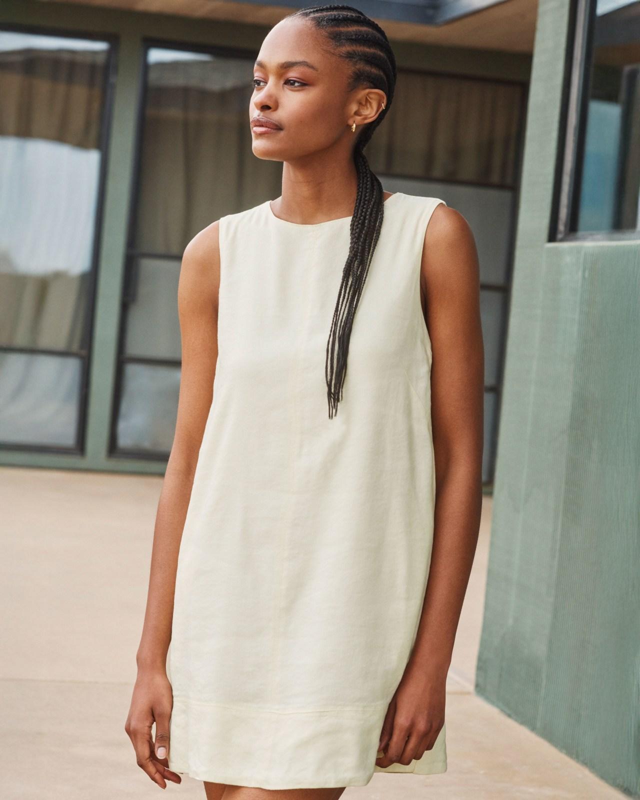 Summer plans? You’re all set in this sleeveless mini shift dress. An easy throw-on-and-go style, it’s made with a stretch linen fabric with just the right amount of drape. Perfect for brunch dates or warm weather walks with the girls, just pair with your favorite flat sandals and head straight out.