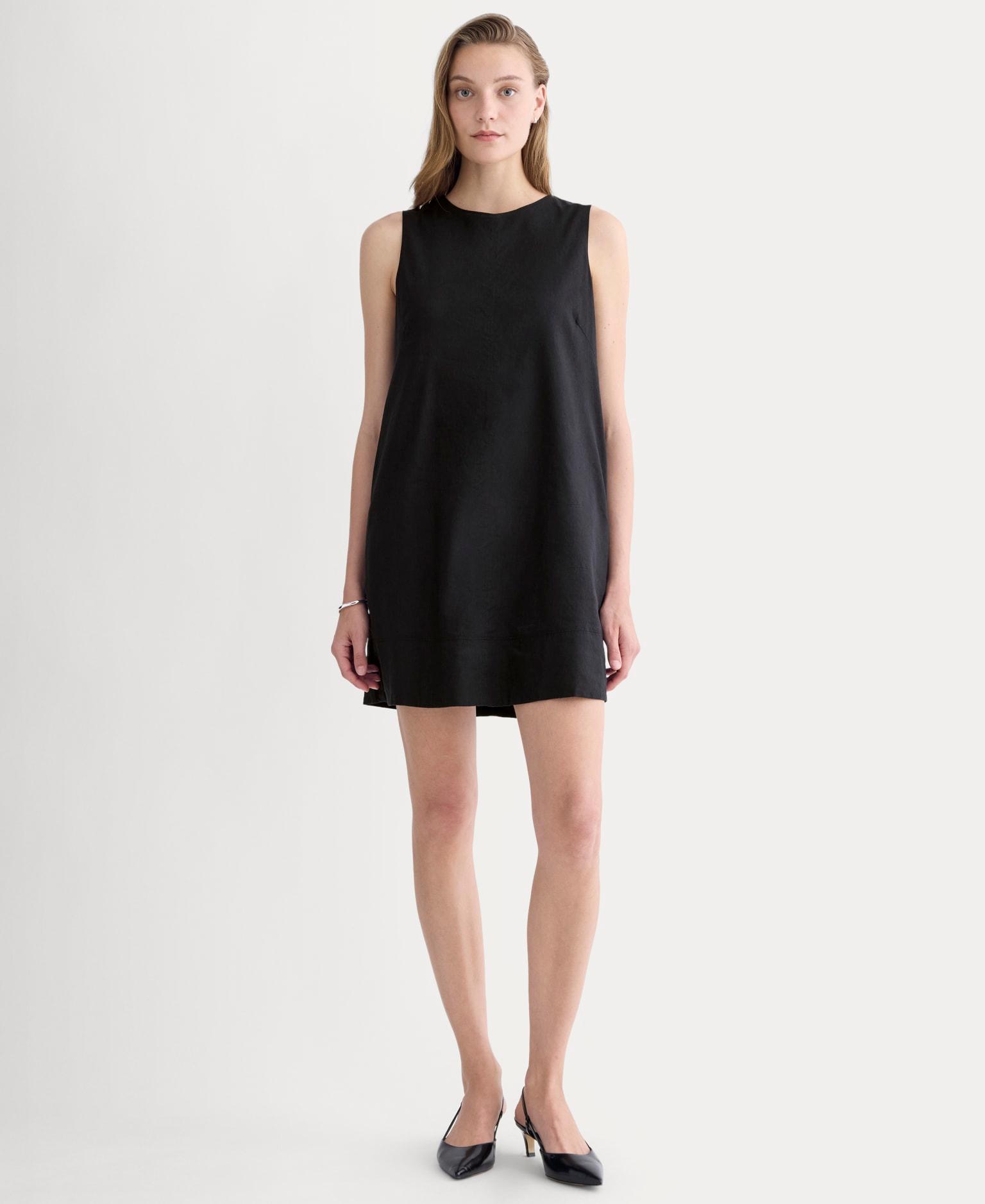 Summer plans? Youre all set in this sleeveless mini shift dress. An easy throw-on-and-go style its made with a stretch linen fabric with just the right amount of drape. Perfect for brunch dates or warm weather walks with the girls just pair with your favorite flat sandals and head straight out. Womens Shift Dress in Stretch Linen by Everlane in Black, Size 14