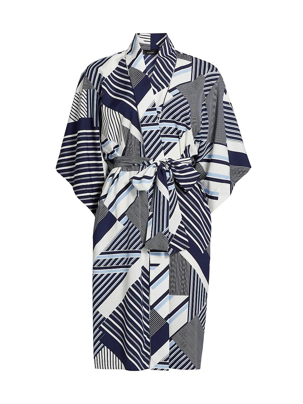 Crafted of crpe de Chine, this Shima robe from Natori features a geometric print and self-tie belt. V-neck Long sleeves Self-tie closure 100% polyester Machine wash Imported SIZE & FIT About 36 from shoulder to hem Model measurements: 510 tall Model is wearing a US size Small. Lingerie - Natori > Natori > Saks Fifth Avenue > Barneys. Natori. Color: Powder Blue Navy. Size: Large.