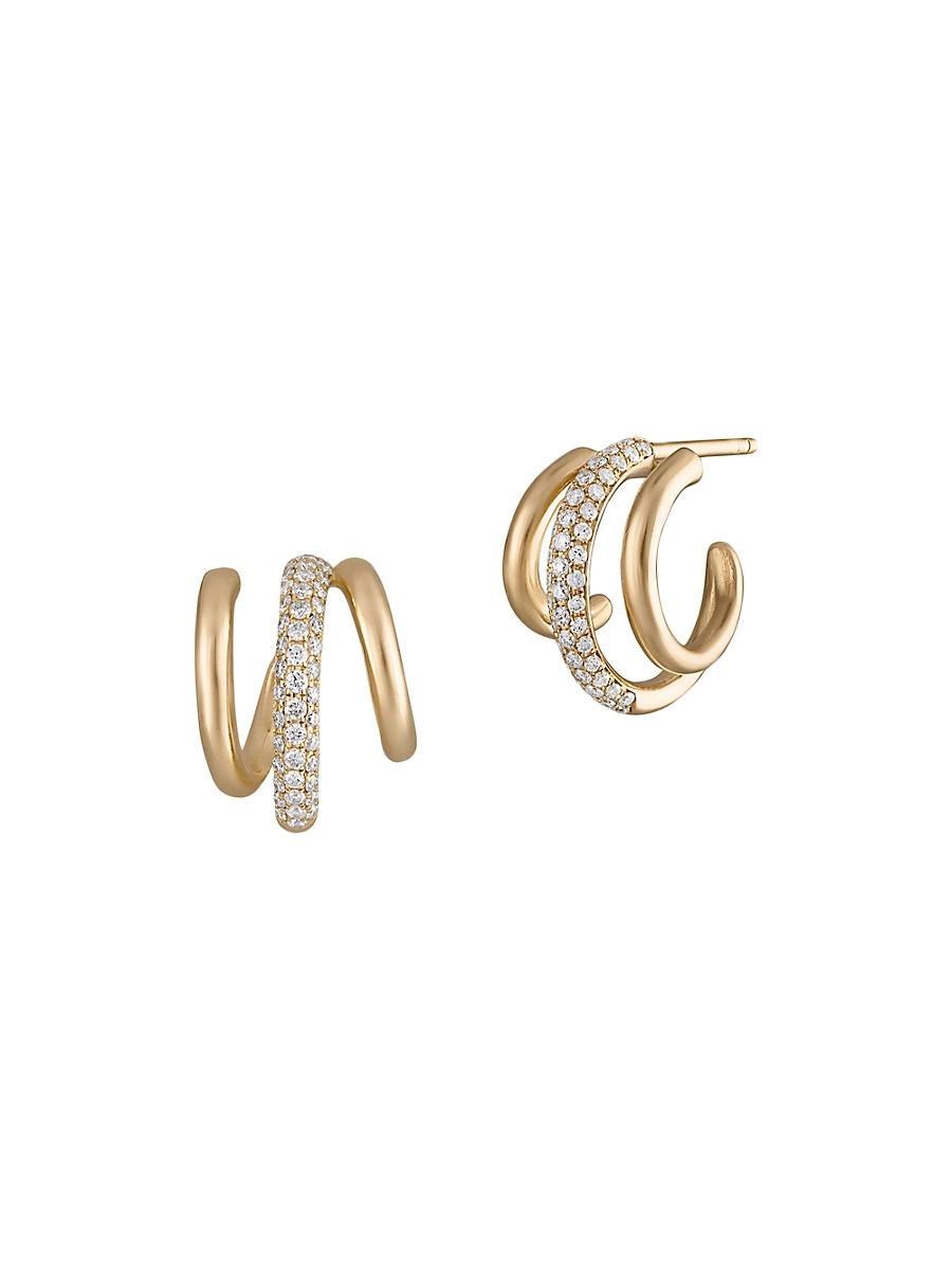 From the Shine Collection. Featuring a triple-hoop silhouette, these huggie hoop earrings from Eden Presley are handcrafted of 14K yellow gold accented with shimmering pav diamonds. Diamonds, 0.52 tcw Diamond color grade: G-H Diamond clarity grade: VS 14K yellow gold Post back Made in USA SIZE About 0.5 diameter. Fashion Jewelry - Fashion Designer > Eden Presley > Saks Fifth Avenue > Barneys. Eden Presley. Color: Yellow Gold.