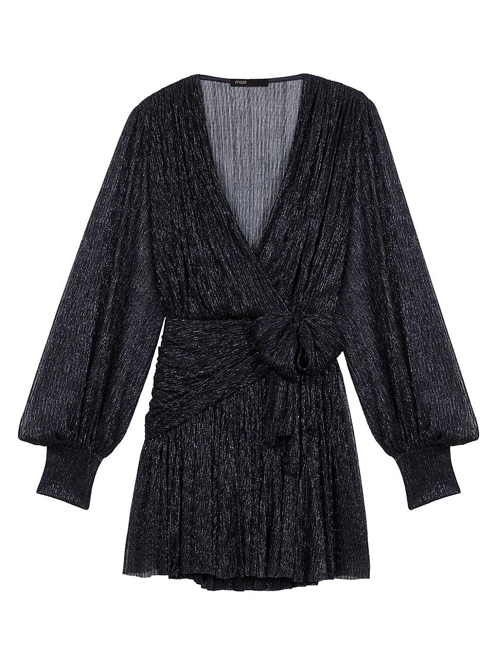 The studio unveils its new collection, the epitome of Parisian chic. Elegance and sophistication unite in a subtle interplay of contrasts and proportions, giving your looks a confident, modern edge. Sparkle from dawn to dusk in this short lam draped-effect dress, an ode to sophistication. Alongside long sleeves with gathered cuffs, it boasts a plunging wrap neckline, accented with a dainty bow at the waist, and a pleated skirt for an irresistible look. Give your silhouette a signature look with a waist belt, jewelry and pumps. Shiny effect short dress Plunging wrap neckline Long sleeves Gathered cuffs Tied at the waist Pleated skirt Draped effect Main fabric: 52% polyester, 48% metalized fibers Upper lining: 100% viscose Skirt lining: 82% polyamide, 18% elastane Imported SIZE & FIT Model measurements: 510 Model is wearing a size 36 (4). Lsd Rtw - Maje > Maje > Saks Fifth Avenue > Barneys. Maje. Color: Black. Size: 10.