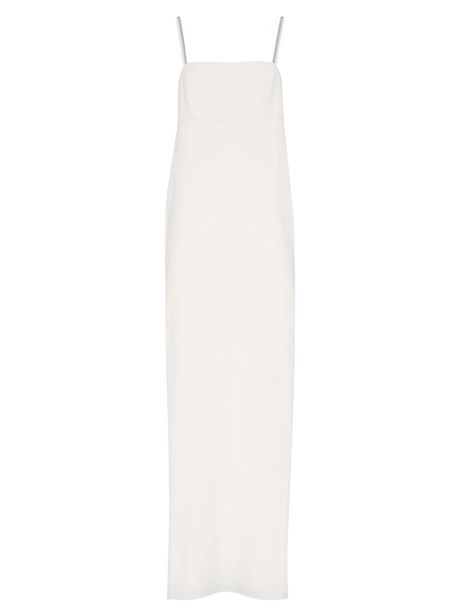 Silk and acetate crepe cady square-neck dress with shiny straps. Off-the-shoulder style Silk-blend crepe lining Nickel-free monili decoration Request dry cleaning at specialist cleaners only, do not bleach. Do not tumble dry, iron at low temperature 52% acetate / 48% silk Made in Italy. Lsd Rtw - Brunello Cucinelli Rtw > Brunello Cucinelli > Saks Fifth Avenue > Barneys. Brunello Cucinelli. Color: Vanilla. Size: XS.