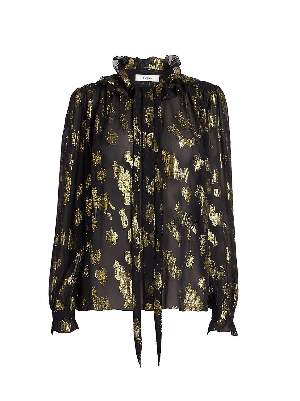 Chlos silk-blend blouse is styled with a shimmering metallic jacquard. Stand collar Tie neck Long sleeves Pulls over 80% silk/20% polyester Lining: 68% acetate/32% silk Dry clean Imported SIZE & FIT Model measurements: 510 tall Model is wearing a US size 4 ABOUT THE BRAND In 1952, founder Gaby Aghion established Chlo as an alternative to couture, and to appeal to the aspirations and empowerment of women. The label is now led by Creative Director Chemena Kamali, who furthers its signature aesthetic of cool, French-girl style. Advanced Designer - Chloe Rtw > Chlo > Saks Fifth Avenue > Barneys. Chlo. Color: Black. Size: 4.