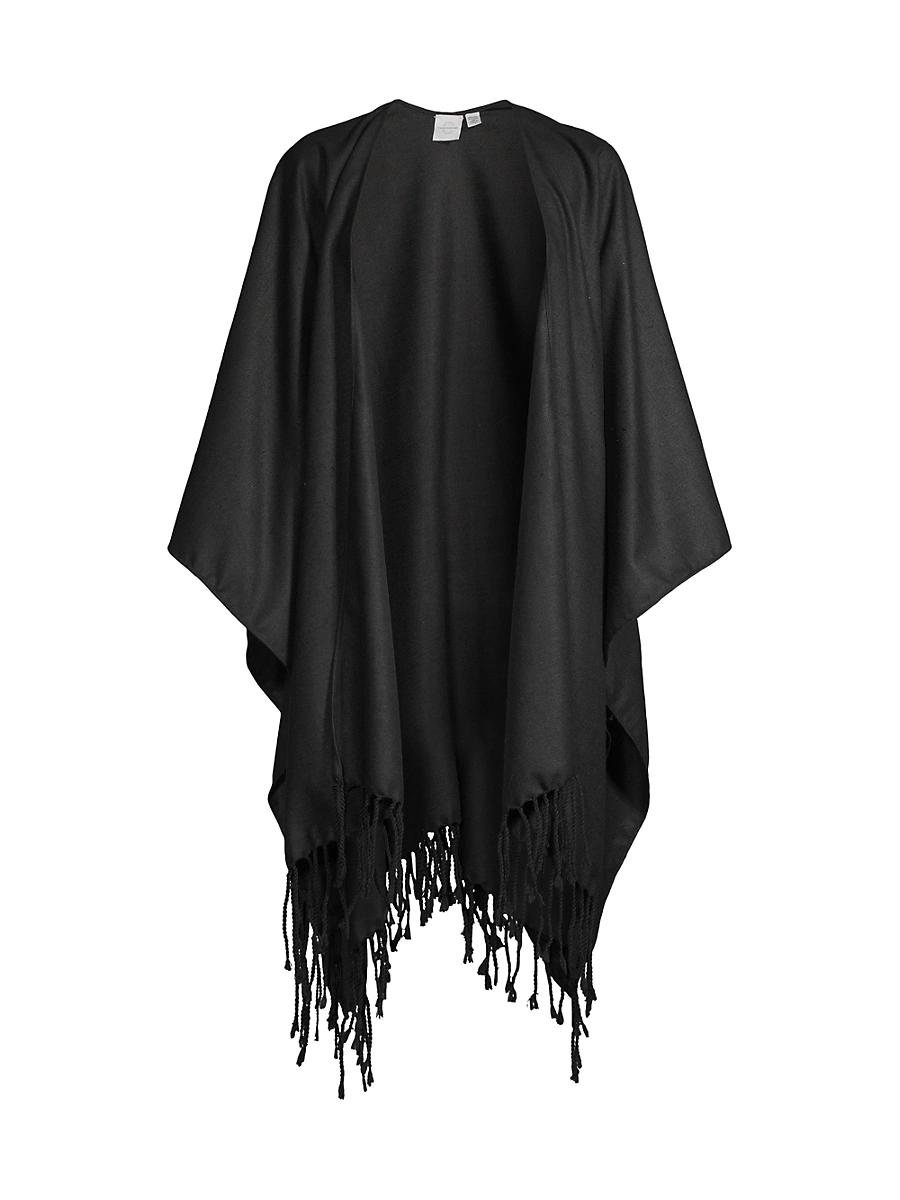 Crafted of silk linen, this cape from Carolyn Rowan Collection is designed with a fringe trim. Pulls on 100% silk linen Dry clean Made in USA SIZE 58L x 52W. Soft Accessories - Scarves > Carolyn Rowan Collection > Saks Fifth Avenue > Barneys. Carolyn Rowan Collection. Color: Black.