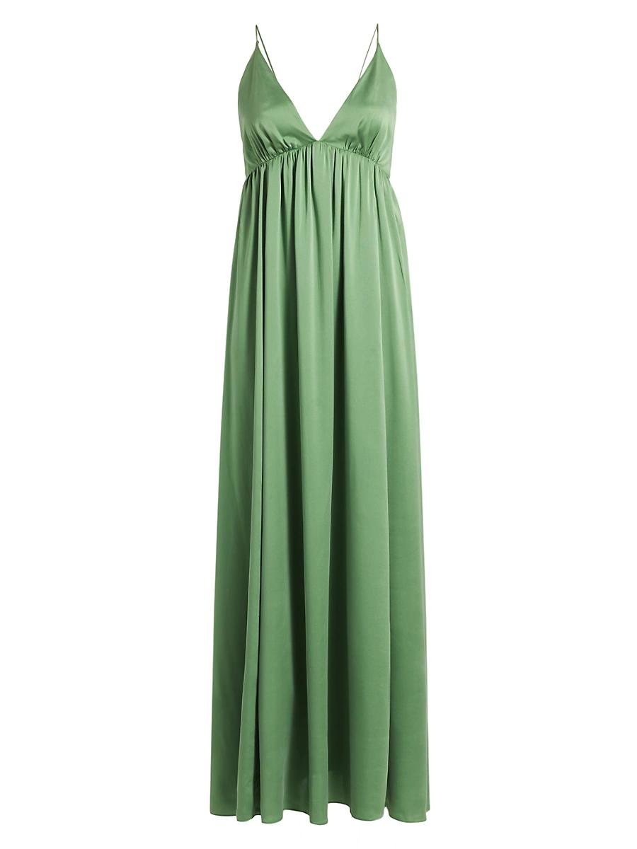 Zimmermanns gown boasts a pure silk construction and a plunging V-neck. This slip style is finished with an empire waist and cross-back spaghetti straps. V-neck Sleeveless Cross-back straps Pulls over 100% silk Lining: 100% polyester Dry clean Imported SIZE & FIT About 63 from shoulder to hem Model measurements: 510 tall Model is wearing a US size 4 ABOUT THE BRAND Australian founders and sister-duo Nicky and Simone Zimmermann design with a signature feminine aesthetic, each piece rife with tiers of fabric, rich embroidery and splashy prints. From ruffled bikinis and beachwear to luxe, intricately patterned maxi (and mini) dresses, everything is overtly romantic in the most elevated, effortless way. Contemporary Sportswear - Zimmermann > Zimmermann > Saks Fifth Avenue > Barneys. Zimmermann. Color: Matcha. Size: 6.