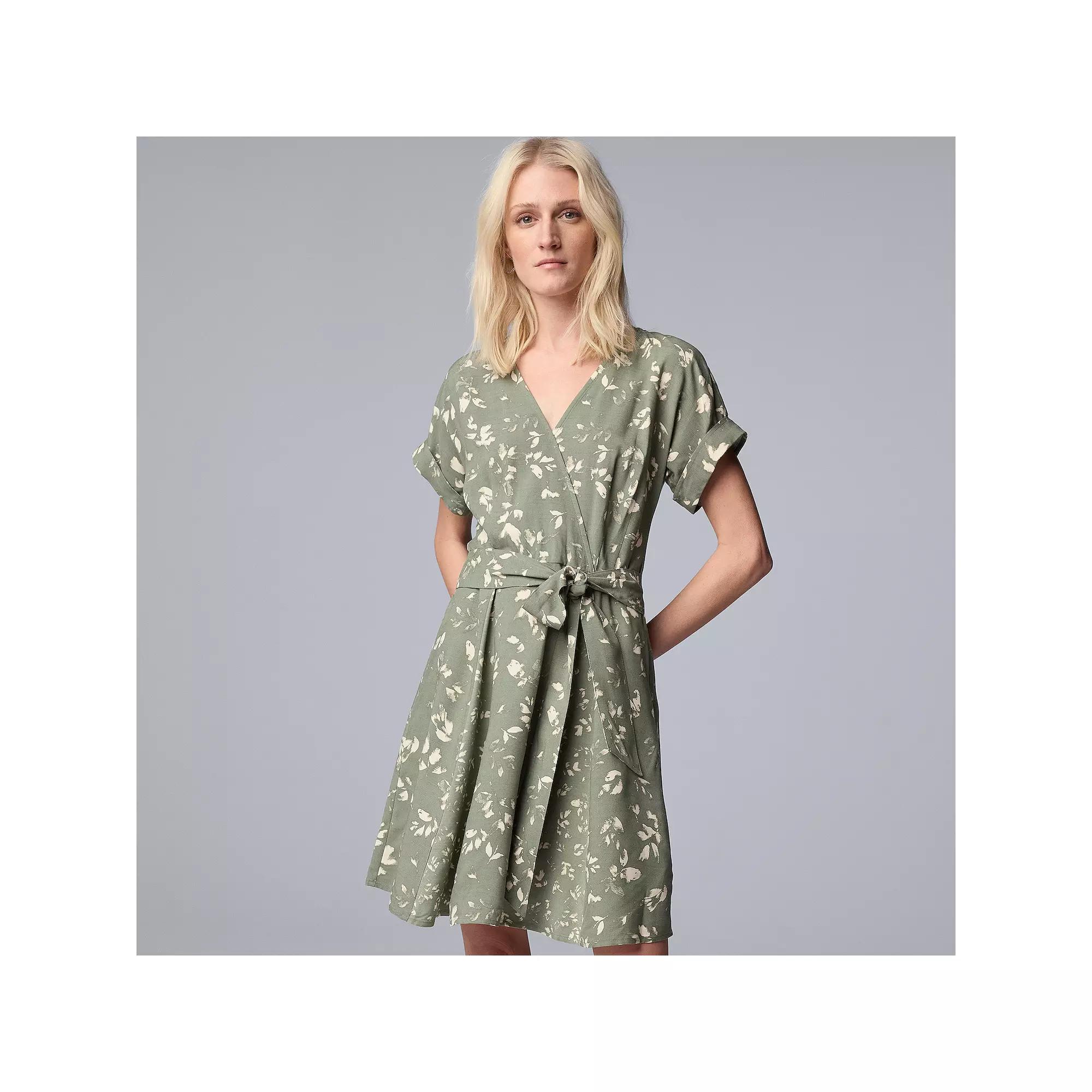 You'll love the elegant warm-weather style of this Simply Vera Vera Wang Tie-Front Dress.Click on this WOMEN'S GUIDE to find the perfect fit and more!You'll love the elegant warm-weather style of this Simply Vera Vera Wang Tie-Front Dress.Click on this WOMEN'S GUIDE to find the perfect fit and more!FEATURES Wrap silhouette Surplice neckline Short dolman sleeves Rounded cuffs No closure - pullover styling Rounded hem Side-tie sash UnlinedFIT & SIZING Back-elastic waistband 36-in. length from shoulder to hem Mini length hits at the thighFABRIC & CARE Rayon Machine wash ImportedRESPONSIBLE Made from responsibly sourced wood fibers Size: M Petite. Color: Large Green Petal. Gender: female. Age Group: adult.