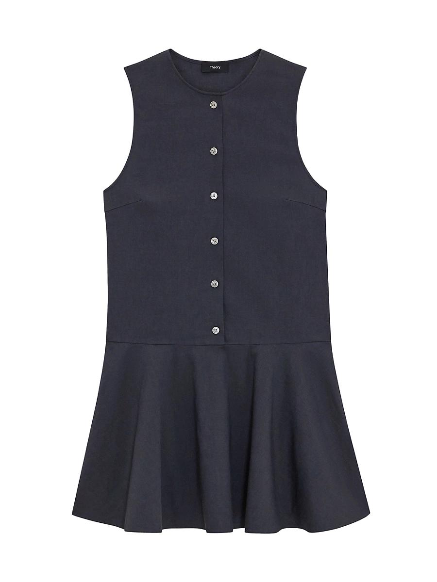 A sleeveless a-line button-down mini dress with a voluminous tiered skirt and a dropped waistline. Crewneck Sleeveless Button-front closure 62% linen/36% viscose/2% elastane Dry clean Imported SIZE & FIT About 32.25 from shoulder to hem Model measurements: 510 tall Model is wearing a US size small. Contemporary Sportswear - Theory Sportswear > Theory > Saks Fifth Avenue > Barneys. Theory. Color: Concord. Size: XL.