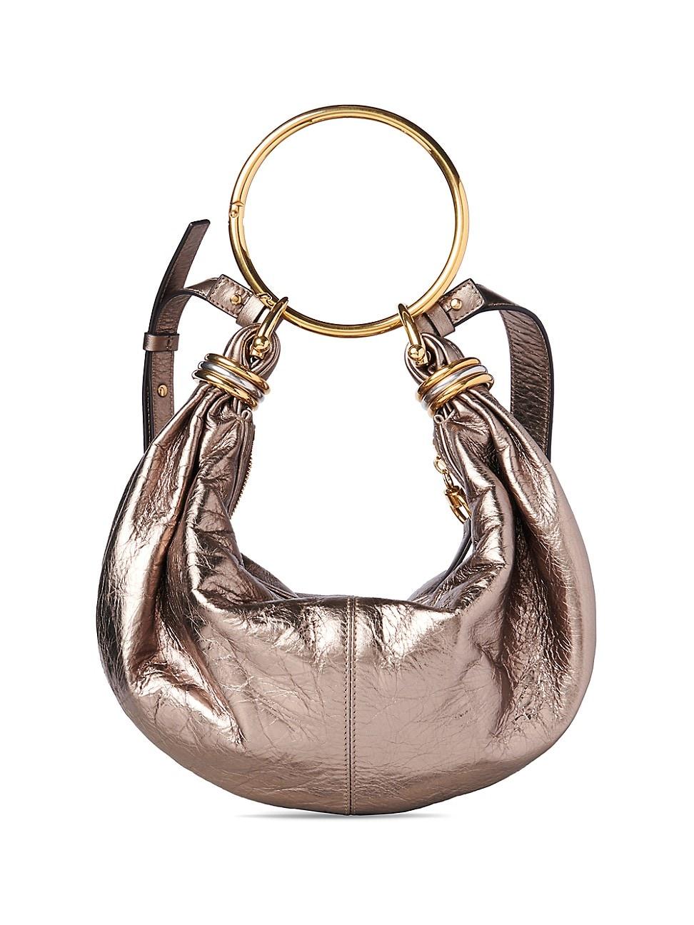 Made in Italy, Chlos Small Bracelet hobo is crafted of metallic leather with a textured finish. This designs standout feature is a unique bracelet handle, adding a touch of elegance. Top handle Leather Lining: 100% leather Made in Italy ABOUT THE BRAND In 1952, founder Gaby Aghion established Chlo as an alternative to couture, and to appeal to the aspirations and empowerment of women. The label is now led by Creative Director Chemena Kamali, who furthers its signature aesthetic of cool, French-girl style. Handbags - Chloe Handbags > Chlo > Saks Fifth Avenue > Barneys. Chlo. Color: Shiny Grey.