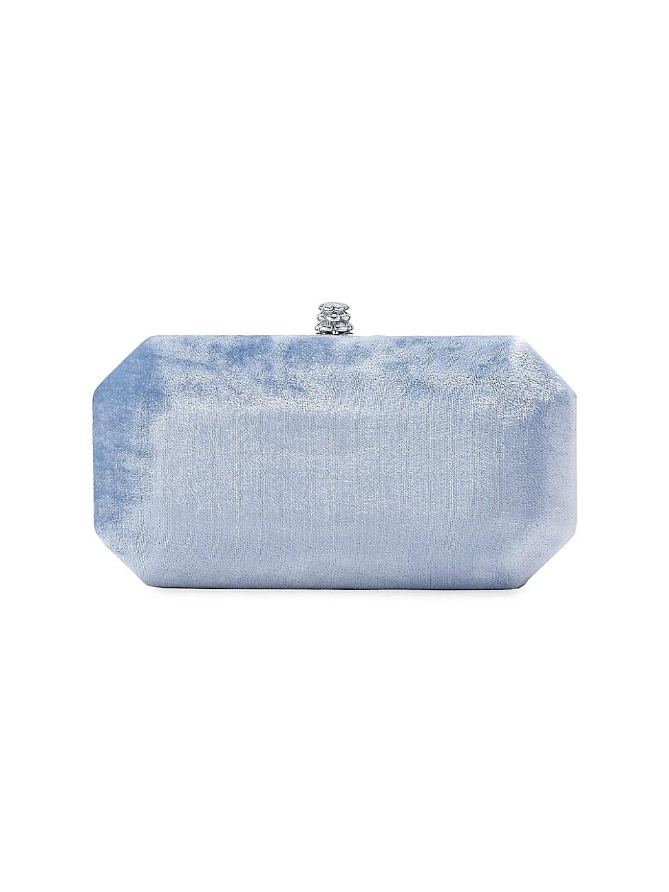 Small perry clutch in crushed velvet with silver hardware. The perry is a hard-framed clutch designed with interior pockets and an optional cross-body chain. Its elegant emerald shape is inspired by Tylers own engagement ring and named after her father, Perry Ellis. It fits the large iPhone and features our signature pinecone closure and thayer lining. Silver hardware Pinecone closure Crushed velvet with satin lining All our customized internal shells are made from 100% recycled polystyrene All satins used are PFC (per- and poly-fluorinated chemicals) free Materials used come from tanneries who put social aspects first, strive to minimize their environmental footprints and preserve the health and safety of their workers We work solely with highly trained Italian artisans Made in Italy SIZE 8 wide x 4.25 high x 2 deep. Lsd Handbags - Handbag/accessories Lsd > Tyler Ellis > Saks Fifth Avenue > Barneys. Tyler Ellis. Color: Icy Blue.