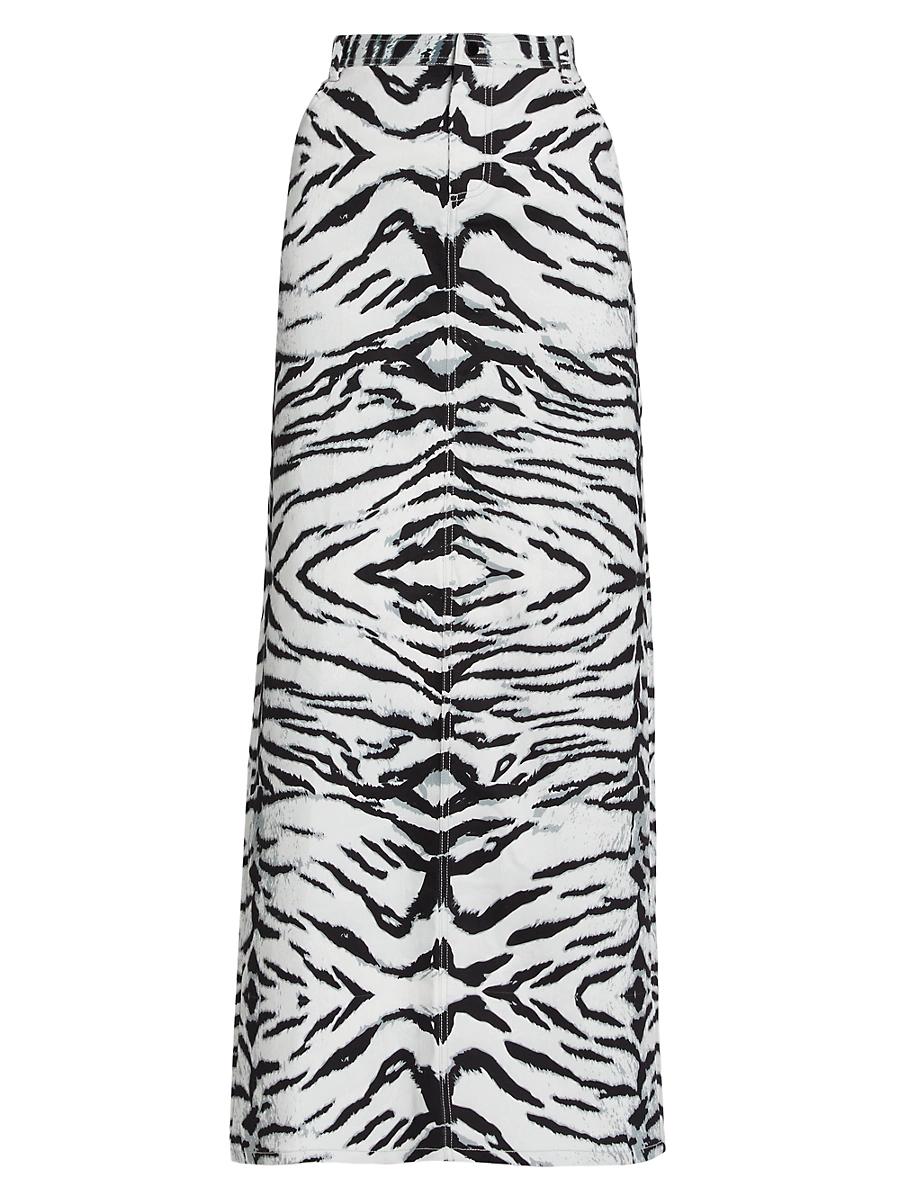 Crafted of stretch denim, the Snow Tiger maxi skirt from BruceGlen is adorned with a vibrant animal print. This style features side slant pockets, back patch pockets, and a back vent. Banded waist Side slant pockets Back patch pockets Back vent Zip fly, button closure 98% cotton/ 2% spandex Machine wash Imported SIZE & FIT About 45 length Model measurements: 510 tall Model is wearing a US size Small. Contemporary Sportswear - Trend > Bruceglen > Saks Fifth Avenue > Barneys. BruceGlen. Color: Black. Size: 24.