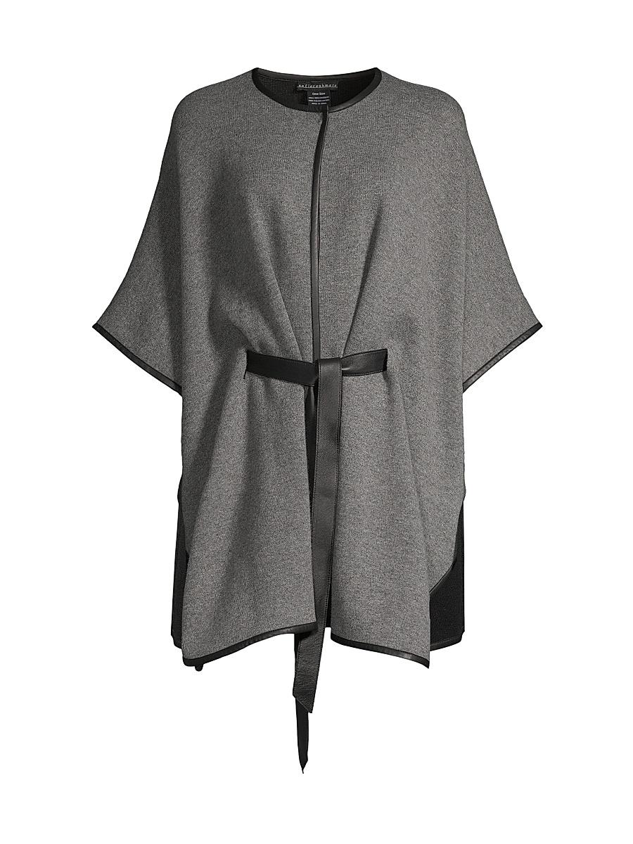 From the Sofia Cashmere Collection. Sofia Cashmeres double-face cape features a contrast self-tie belt at the waist, smooth leather trim, and splits on each side. Round neck Sleeveless Self-tie belt 100% cashmere Leather trim Dry clean only Imported SIZE About 32 from shoulder to hem Model measurements: 510 tall Model is wearing a US size Small. Soft Accessories - Cold Weather Accessories > Sofia Cashmere > Saks Fifth Avenue > Barneys. Sofia Cashmere. Color: Camel.