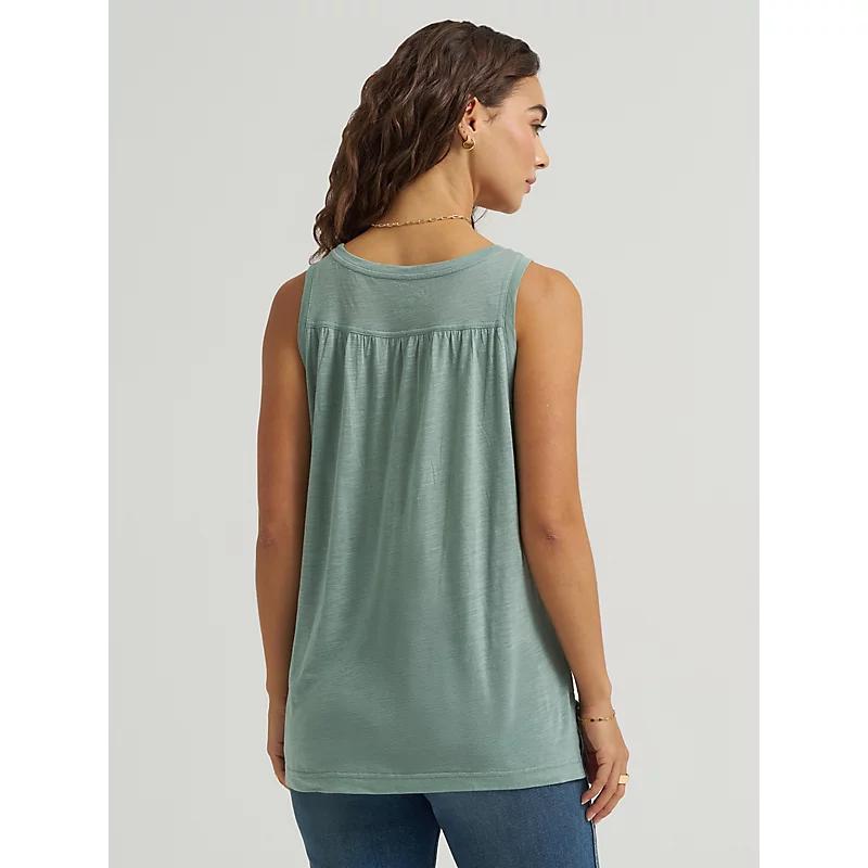 No warm weather look is complete without a good tank top. With a classic scoop neck and a flowy regular fit, this tank prioritizes comfort while always looking good. Soft in both material and palette, this everyday tank top brings an effortless comfort to your favorite look. 70% Lyocell, 30% Linen. Desert Sage. XL.