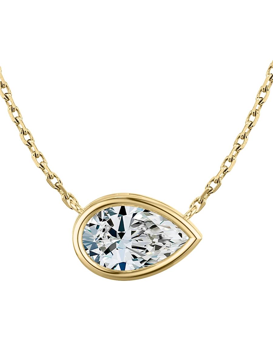 Womens Solitaire Classics 14K Gold & 1.00 TCW Lab-Grown Diamond Pear Bezel Solitaire Necklace
