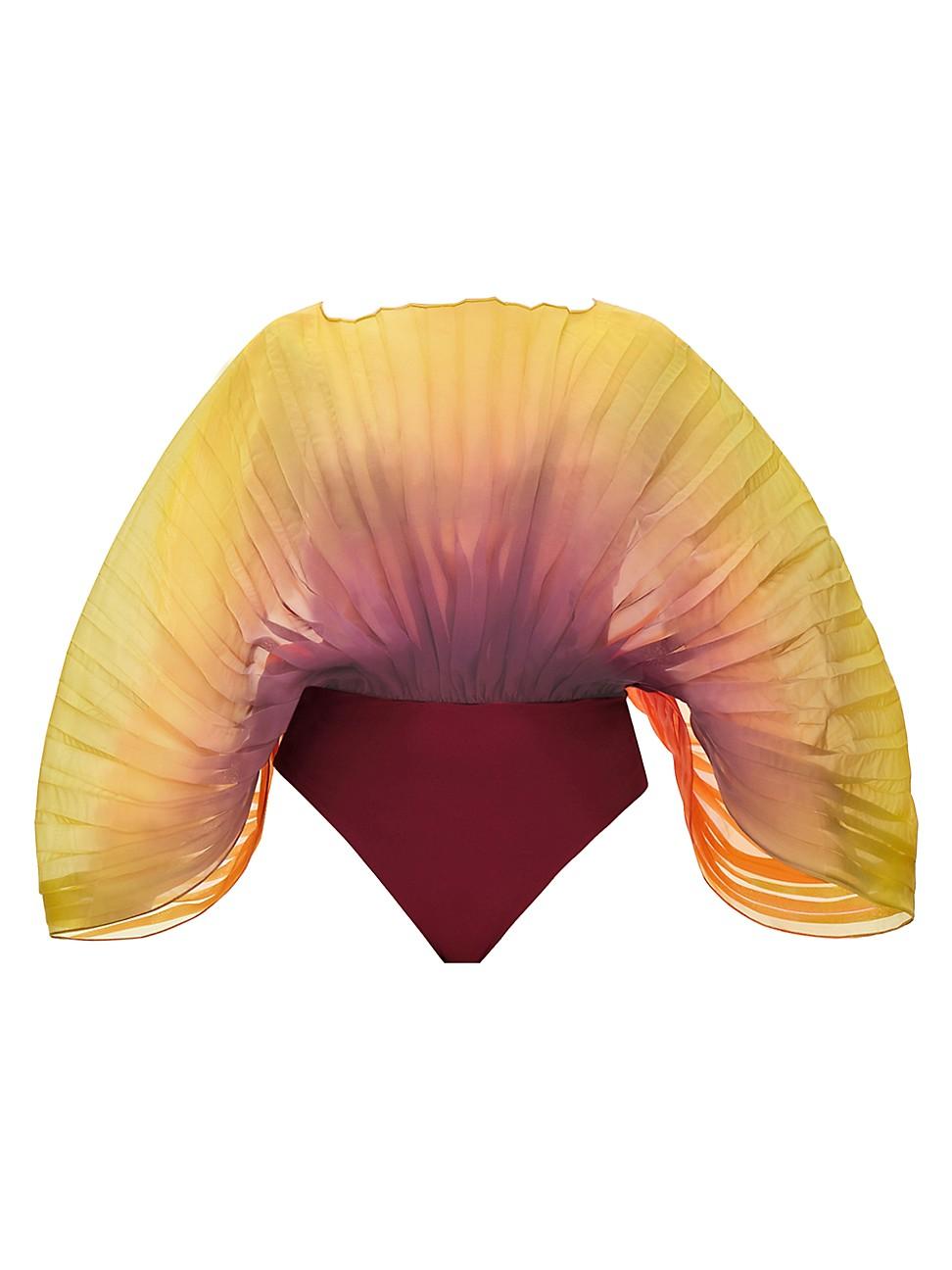 Crafted of organza, this Sombra bodysuit from Andrea Iyamah showcases a box-pleated balloon bodice and an ombr print. Boatneck Three-quarter-length balloon sleeves Back zip, hook-and-eye closure 100% polyester Trim: 82% nylon/18% spandex Dry clean Imported SIZE & FIT Model measurements: 510 tall Model is wearing a US size Small ABOUT THE BRAND Andrea Iyamah, a resort-wear brand founded by the eponymous Nigerian-Canadian designer in 2019, is inspired by nature and world cultures. The label is known for its signature retro silhouettes (think high-waisted bikinis), intricate techniques and bold colors. And with a focus on inclusive sizing and cuts that flatter a variety of bodies, the labels designs are summertime must-haves. Outerwear And Swimwear - Contemporary Swim > Andrea Iyamah > Saks Fifth Avenue > Barneys. Andrea Iyamah. Color: Adwa Purple Print. Size: Medium.