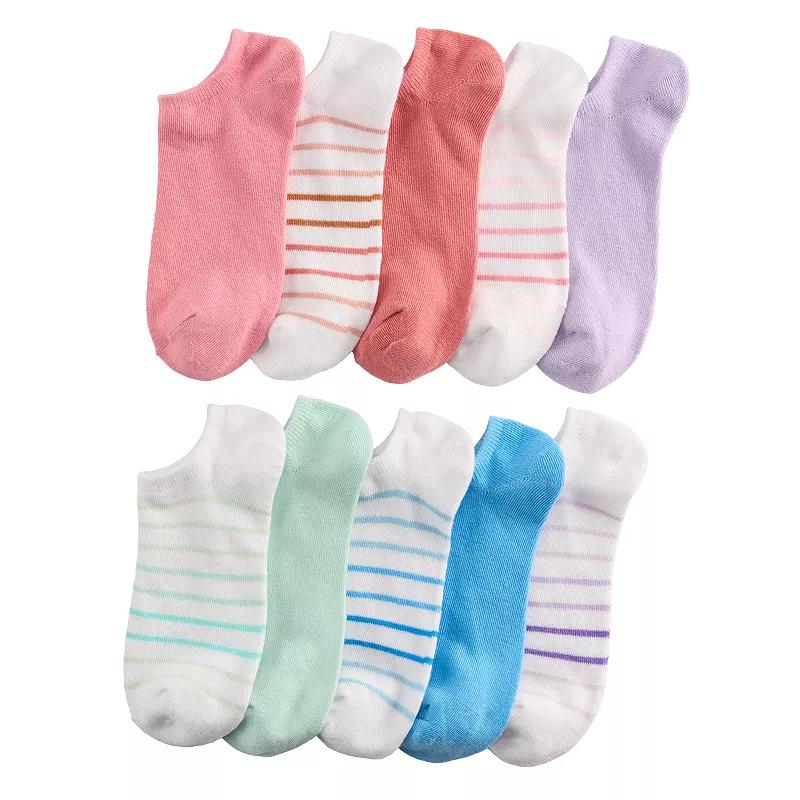 Upgrade your sock collection with these fun Womens Sonoma Goods For Life 10-Pack Color Stripe No-Show Socks. How do you accessorize? Check out our ACCESSORIES GUIDE for essential tips to elevate your style with must-have accessories.Upgrade your sock collection with these fun Womens Sonoma Goods For Life 10-Pack Color Stripe No-Show Socks. How do you accessorize? Check out our ACCESSORIES GUIDE for essential tips to elevate your style with must-have accessories.FEATURES Includes 10 pairs of socksFIT & SIZING No-show styling Fits shoe sizes 5-10 One size fits mostFABRIC & CARE 58% polyester, 40% recycled polyester, 1% spandex, 1% rubber Machine wash ImportedRESPONSIBLE Contains recycled polyester Size: 9-11. Color: White. Gender: female. Age Group: adult.