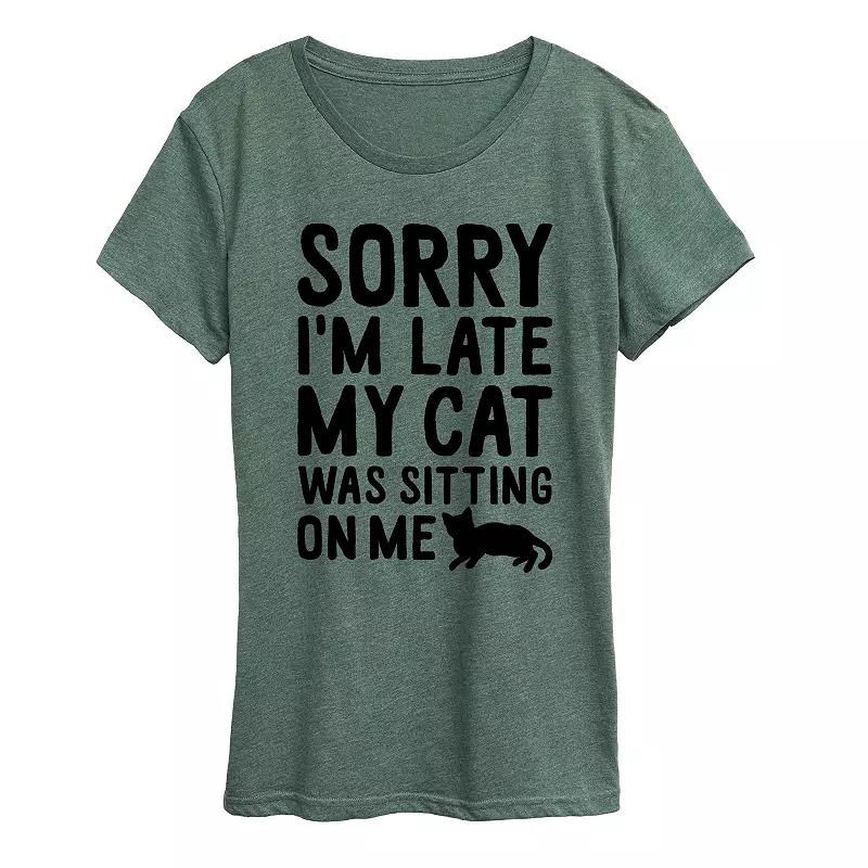 She will love showing off her style with this Womens Sorry Im Late Cat Sitting On Me Graphic Tee. FEATURES Short sleeves CrewneckFABRIC & CARE Solid Color: Cotton ; Heather Colors: Cotton/Polyester Machine wash Imported Size: Medium. Color: Green. Gender: female. Age Group: adult.
