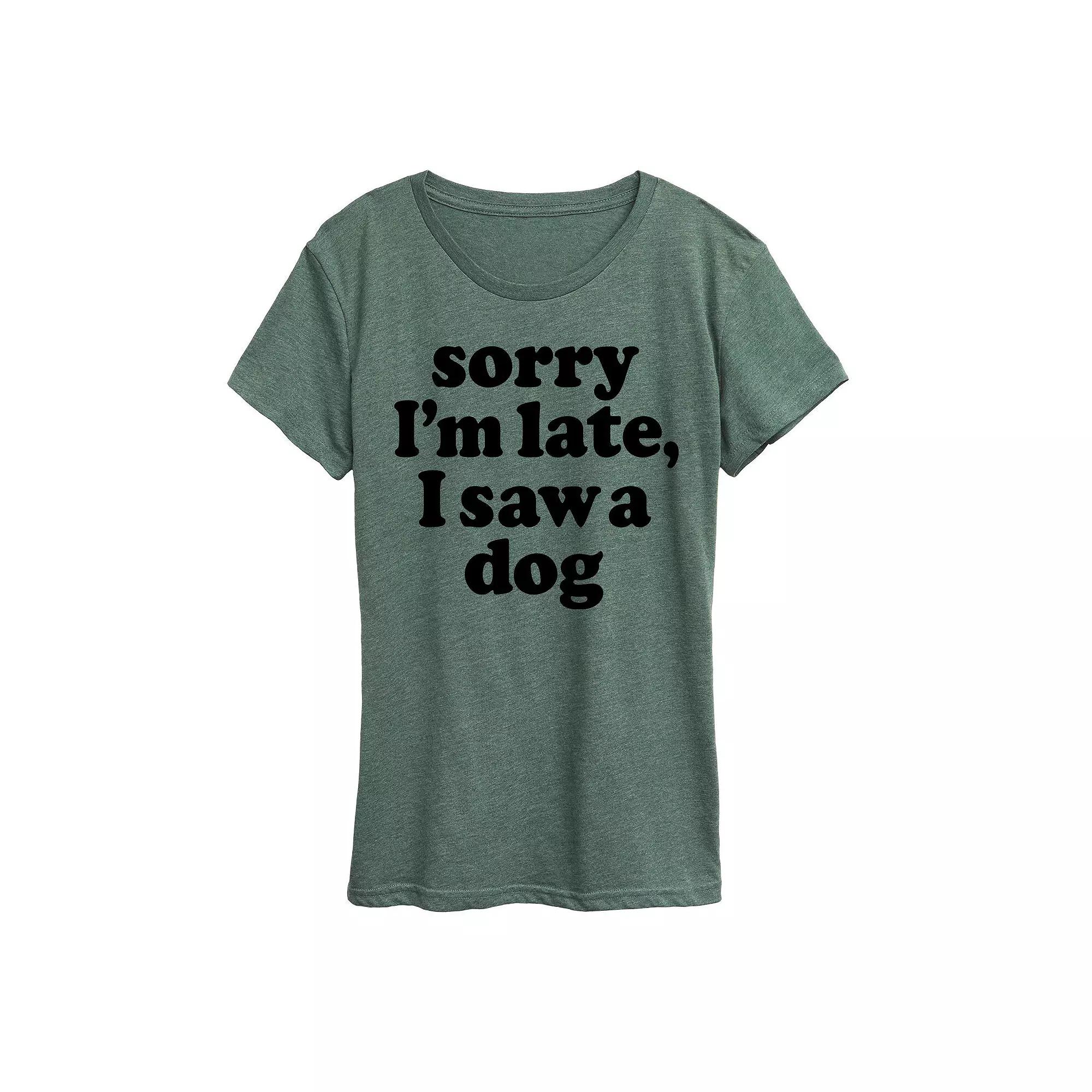 She will love showing off her style with this Womens Sorry Im Late Saw Dog Graphic Tee. FEATURES Short sleeves CrewneckFABRIC & CARE Solid Color: Cotton ; Heather Colors: Cotton/Polyester Machine wash Imported Size: X Large. Color: Green. Gender: female. Age Group: adult.