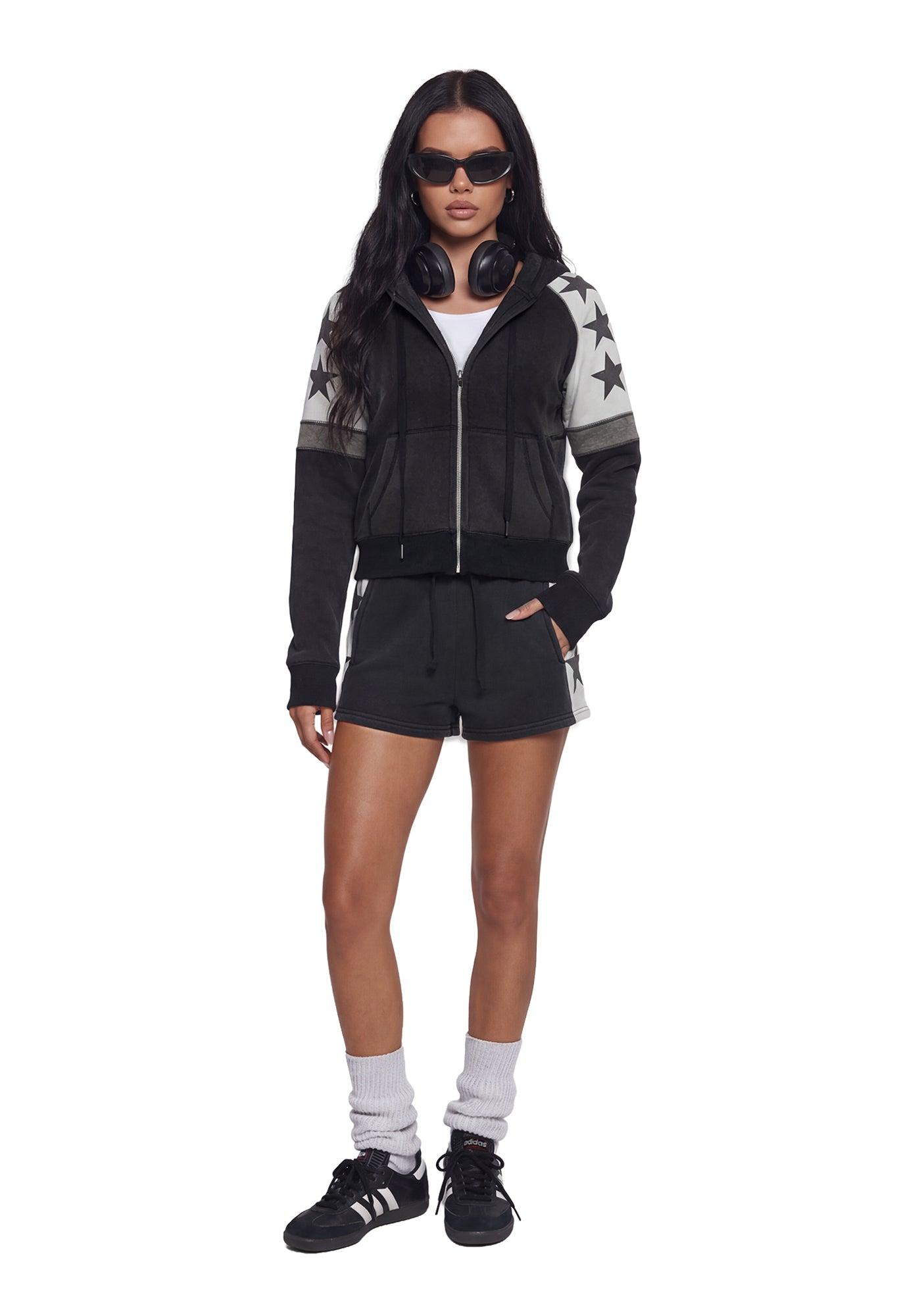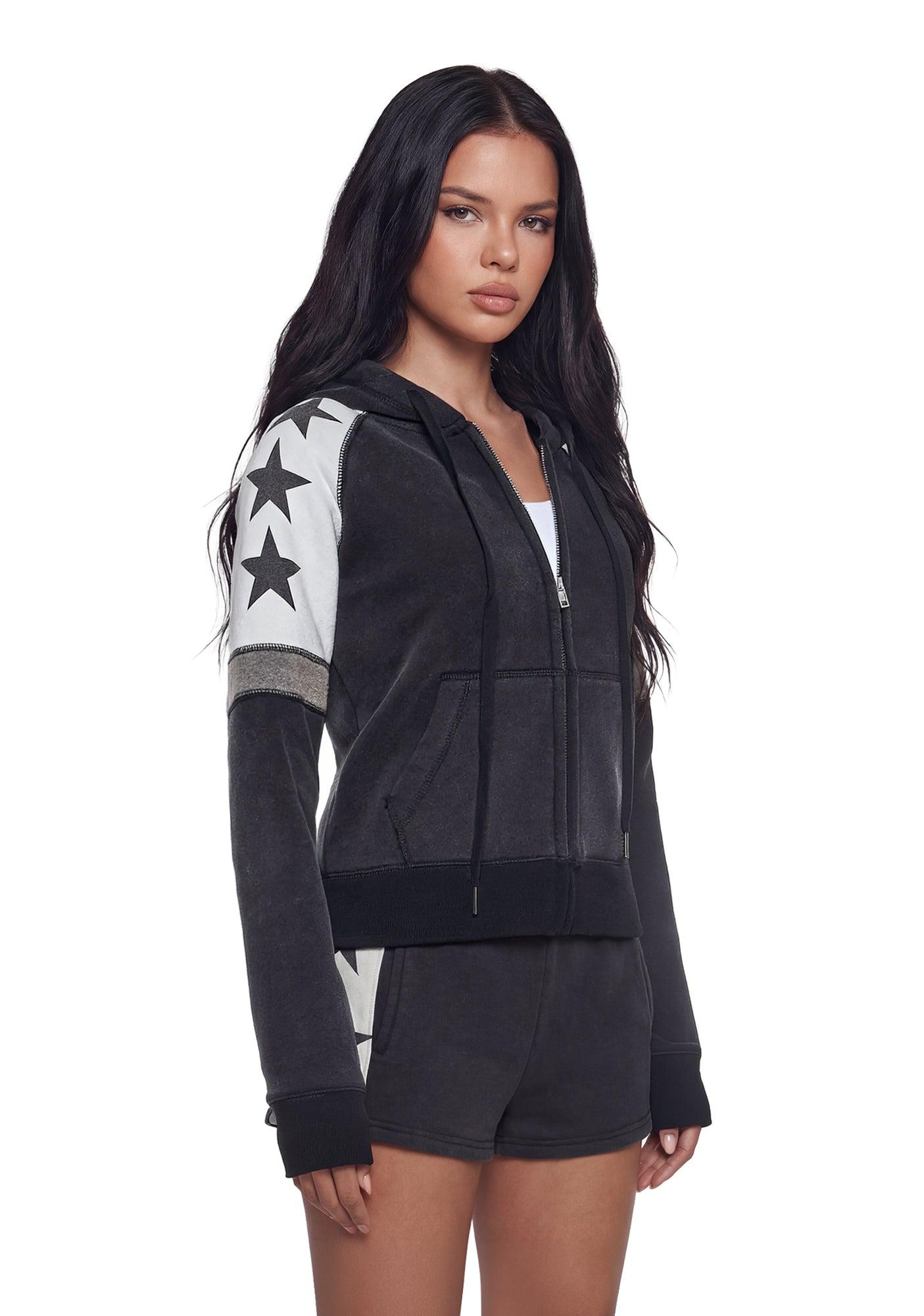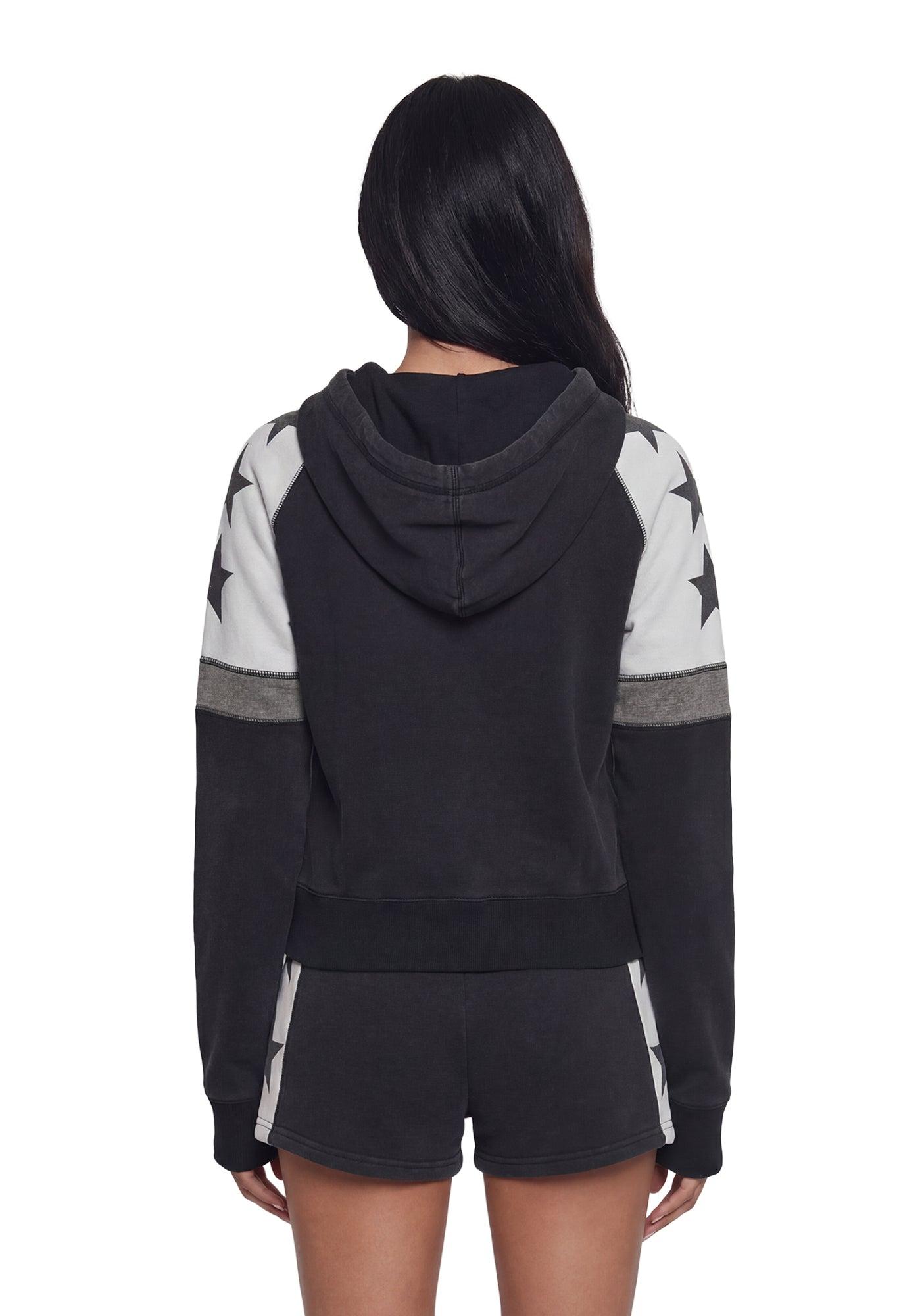 Womens Star Print Hoodie Current Mood - Black