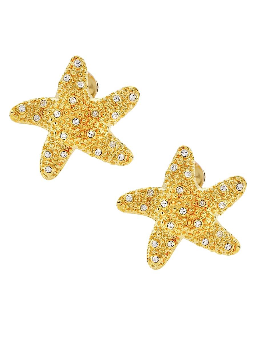 Designed with crystal embellishing for a bit of sparkle, Kenneth Jay Lanes Starfish earrings have a textured finish. Faux crystals 22K gold-plated Clip-on Imported SIZE Diameter, about 1.25. Fashion Jewelry - Trend Jewelry > Kenneth Jay Lane > Saks Fifth Avenue > Barneys. Kenneth Jay Lane. Color: Gold Crystal.