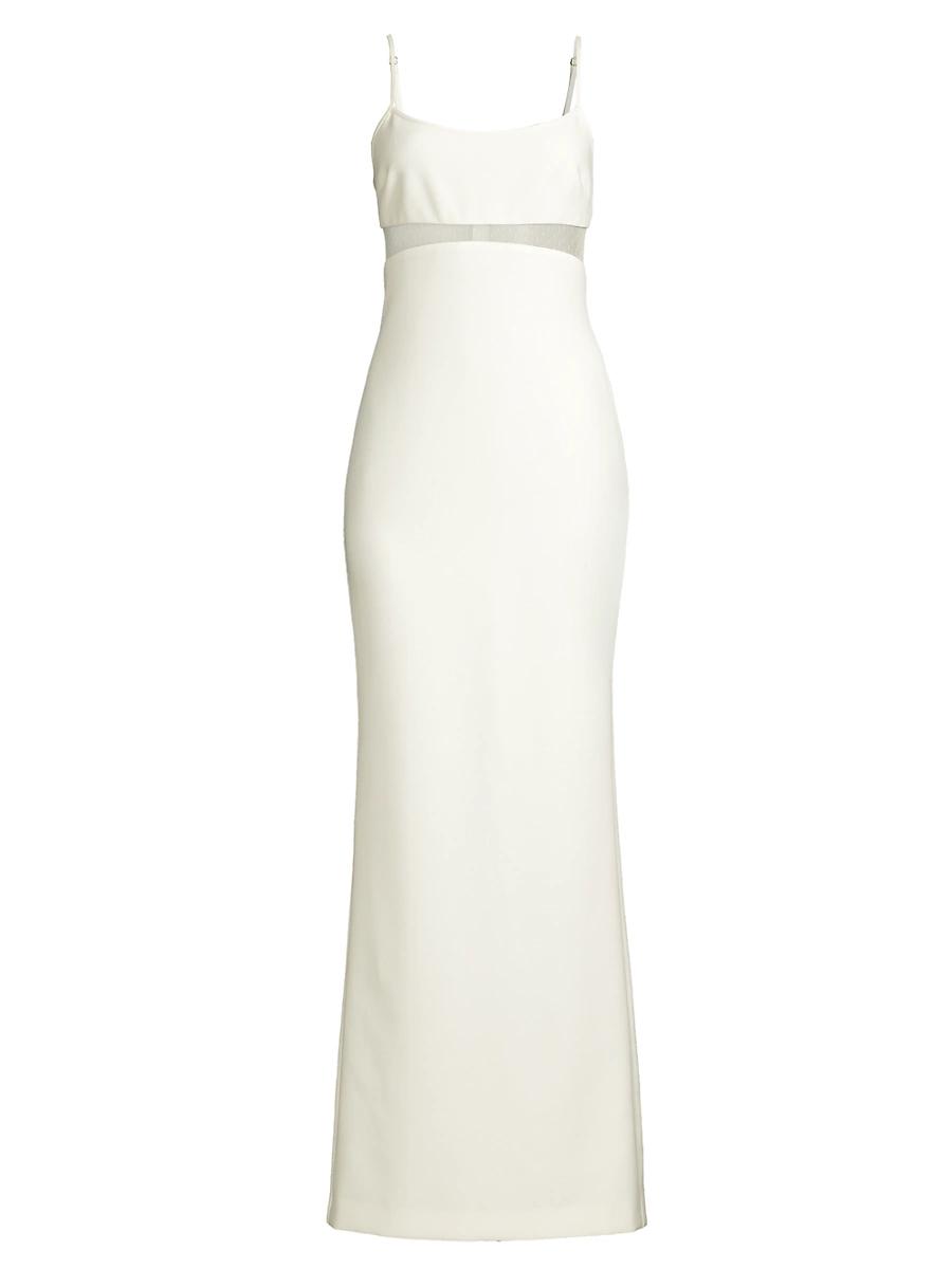 This stunning Stefania gown from LIKELY showcases a clean design, finished with a sheer swiss dot inset at the waist. Scoopneck Fixed straps Back zip closure 67% polyester/27% rayon/6% spandex Lining: 100% polyester Dry clean Imported SIZE & FIT About 57 from shoulder to hem Model measurements: 510 tall Model is wearing a US size 4. Dress Collections - Contemporary Evening > Likely > Saks Fifth Avenue > Barneys. Likely. Color: White. Size: 10.