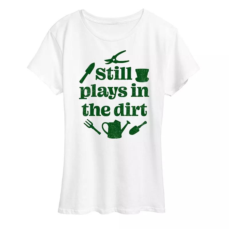 She will love showing off her style with this Womens Still Plays In The Dirt Graphic Tee. FEATURES Short sleeves CrewneckFABRIC & CARE Solid Color: Cotton ; Heather Colors: Cotton/Polyester Machine wash Imported Size: X Large. Color: White. Gender: female. Age Group: adult.