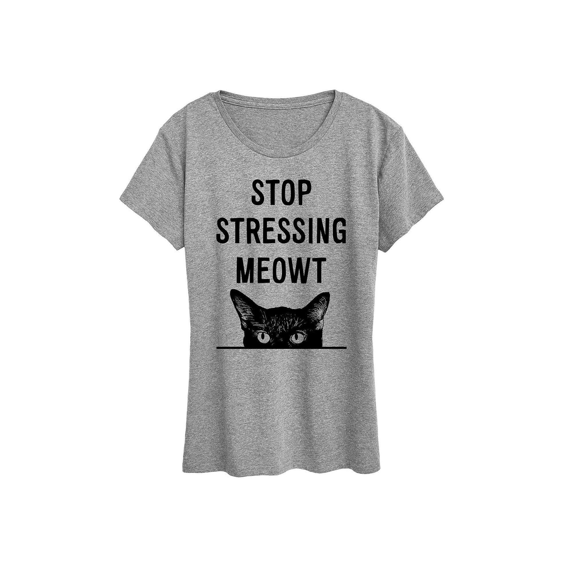 She will love showing off her style with this Womens Stop Stressing Meowt Graphic Tee. She will love showing off her style with this Womens Stop Stressing Meowt Graphic Tee. FEATURES Short sleeves CrewneckFABRIC & CARE Solid Color: Cotton ; Heather Colors: Cotton/Polyester Machine wash Imported Size: Large. Color: Dark Grey. Gender: female. Age Group: adult.