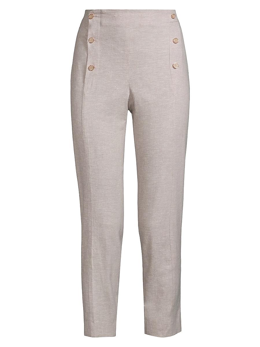 These Donna Karan New York pants feature a cropped, straight-leg silhouette cut from a stretch linen blend. A sailor button closure defines the look. Button-front closure 54% linen/43% viscose/3% elastane Dry clean only Imported SIZE & FIT Rise, about 10 Inseam, about 28 Model measurements: 510 tall Model is wearing a US size 4. Modern Collections - D K N Y > Donna Karan New York > Saks Fifth Avenue. Donna Karan New York. Color: Tan Ivory. Size: 14.