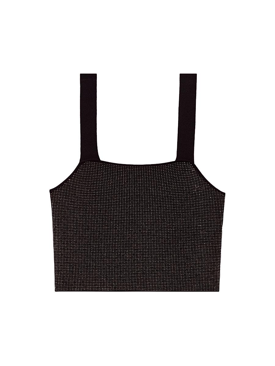 Sporty style gets a touch of sparkle. This rhinestone knit top combines a loose fit with subtle shine, in a distinctly lounge style. Wear with the matching trousers for a cool, sparkling look. 225LACLYNIX Made with responsibly sourced viscose Short rhinestone knit top Wide straps and square neckline Loose and comfortable fit Main material: 82% viscose, 18% polyamide Imported SIZE Model measurements: 58 Model is wearing a size 1. Lsd Rtw - Maje > Maje > Saks Fifth Avenue. Maje. Color: Black. S