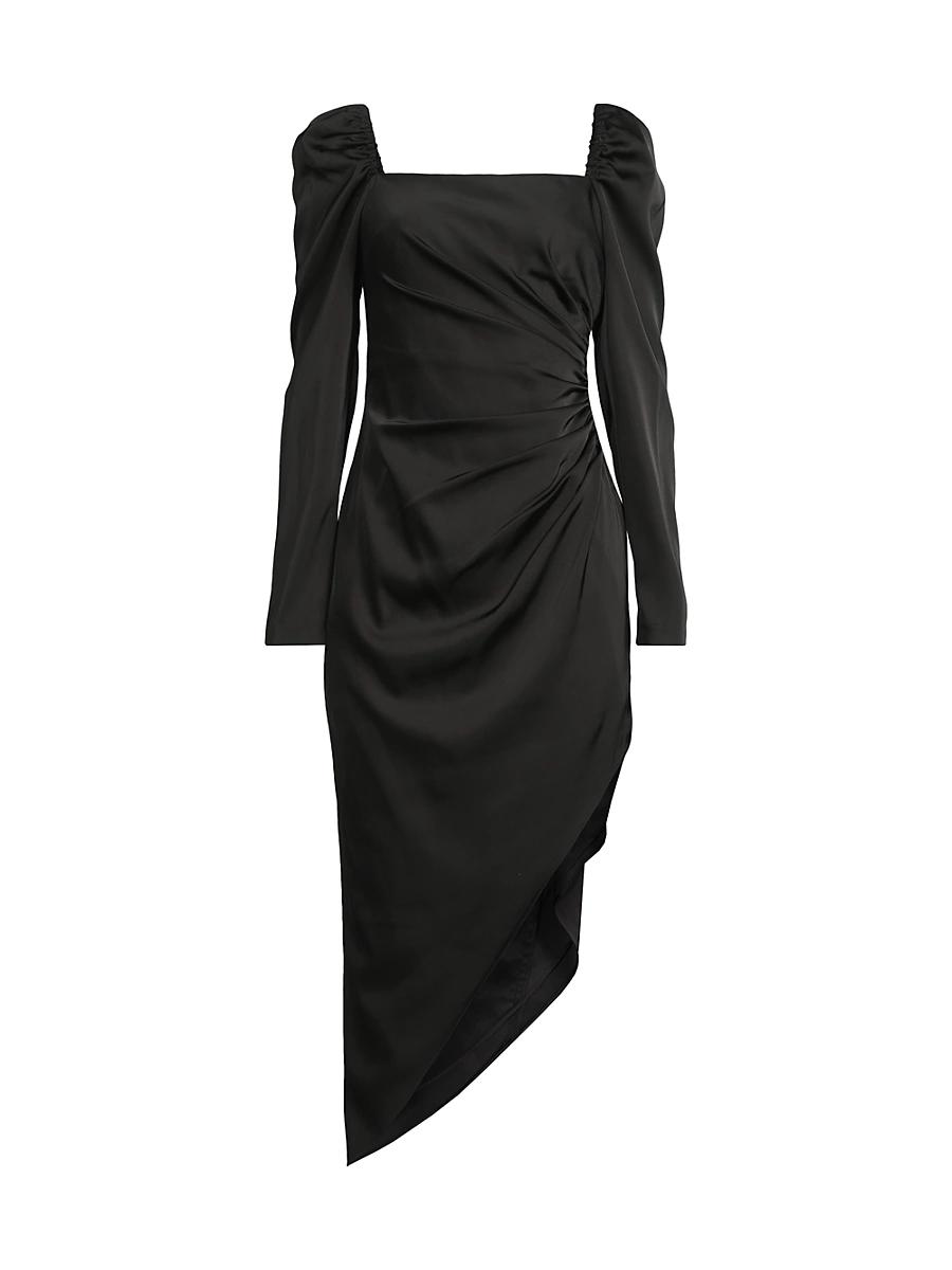 Crafted of stretch satin, Liv Fosters midi-length cocktail dress showcases a defined square neck framed by puffed long sleeves. This romantic piece gathers at the side waist, transcending to an asymmetric hem. Squareneck Long puff sleeves Gathered side Asymmetric hem Concealed side zip closure 97% polyester/3% elastane Lining: 96% polyester/4% elastane Dry clean Imported SIZE & FIT Model measurements: 510 tall Model is wearing a US size 4. Dress Collections - Aidan Mattox > Liv Foster > Saks Fifth Avenue > Barneys. Liv Foster. Color: Black. Size: 14.