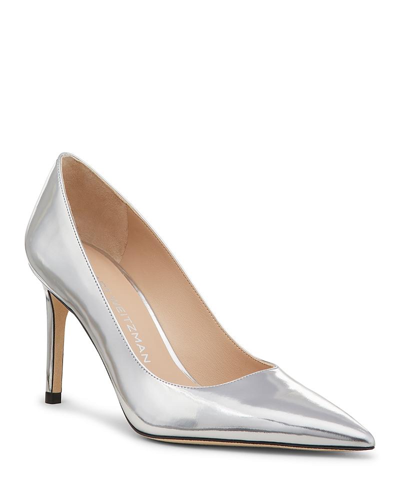 Stuart Weitzman Womens Stuart Power 85 Pumps.Color:Platino.Size:5.Material:Leather upper, lining and sole.