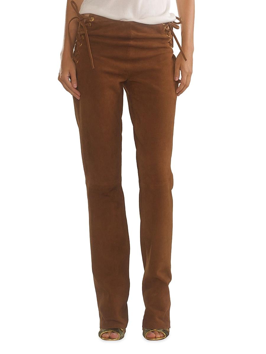 Crafted of suede, these mid-rise pants from Cynthia Rowley are cut in a straight-leg silhouette and styled with lace-up detailing at the sides. Side lace-up closure 100% suede Dry clean by leather specialist Imported SIZE & FIT Rise: about 10.5 Inseam: about 34 Model measurements: 510 tall Model is wearing a US size 4. Modern Collections - Branded Separates > Cynthia Rowley > Saks Fifth Avenue > Barneys. Cynthia Rowley. Color: Brown. Size: 10.