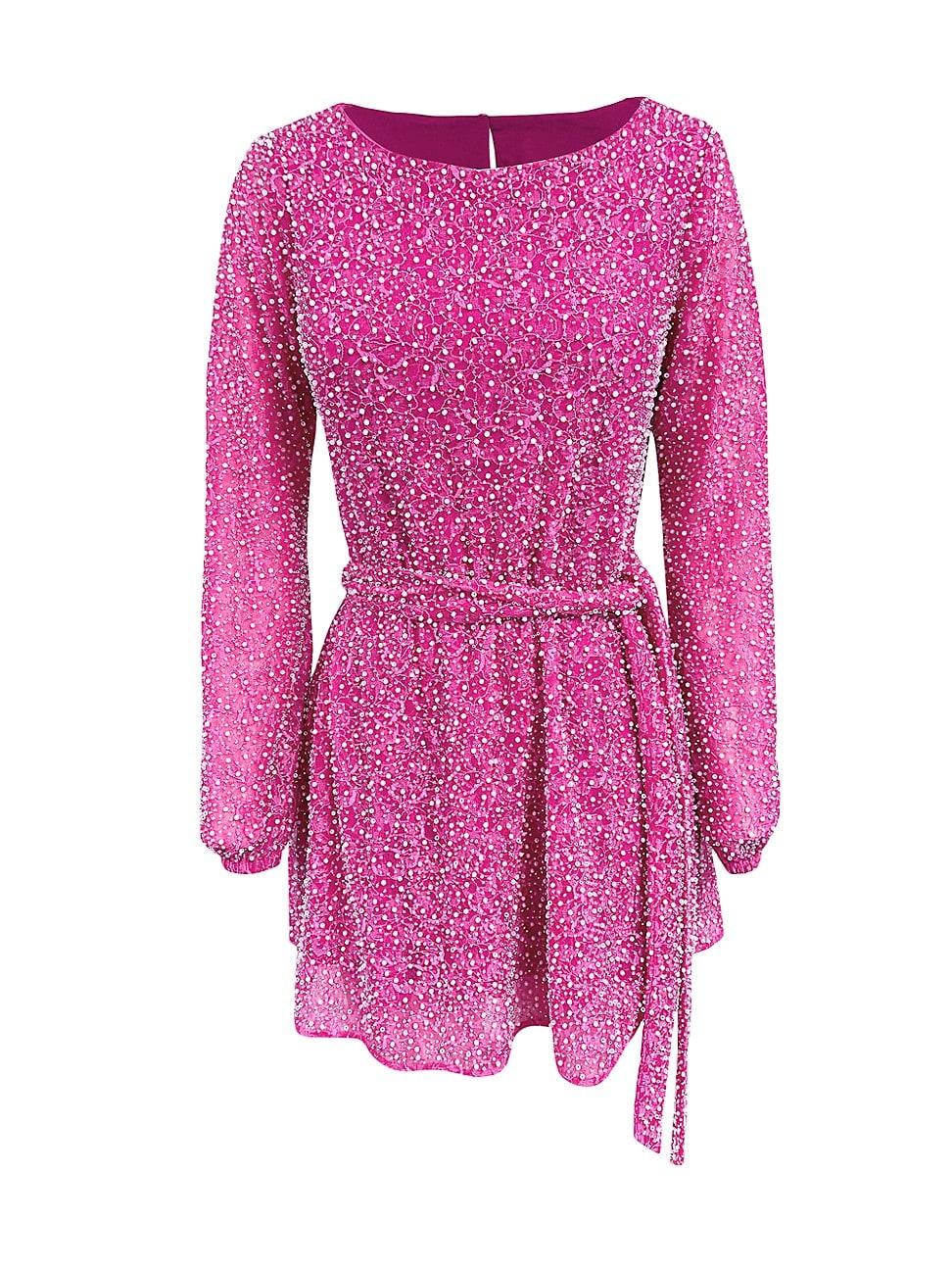 From the Summer Collection. Dress The Populations Kirsi minidress flaunts a wide neck, long bishop sleeve, and loose fit, finished with an intricate beaded floral design. Boatneck Long bishop sleeves, elasticized cuffs Back button closure 100% polyester Lining: 100% polyester Hand wash Imported SIZE & FIT About 32.75 from shoulder to he Model measurements: 510 tall Model is wearing a US size Small. Dress Collections - Contemporary Evening > Dress The Population > Saks Fifth Avenue > Barneys. Dress The Population. Color: Wisteria Multi. Size: Small.
