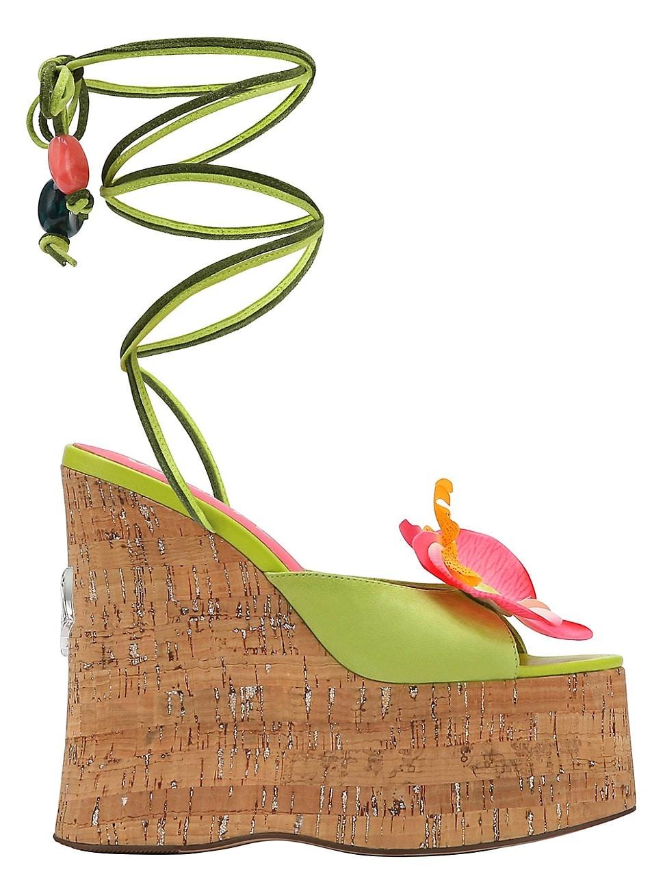 Sunflower our brand new wedged heel with a peep toe design perfect to complete a summer look. This style has a super cute soft green suede upper design with a striking pink flower, Summery ankle tie with a beaded finish to match and a Glitter cork wrap featuring the famous wolfe head plaque on the heel. 140mm (5.5) heel height 60mm (2.3) platform height 100% suede upper Suede soft leg tie Beaded tie finish Flower centre piece Leather lining Cork wedge cover Full leather insole featuring new embossed logo Peep Toe Iconic Wolfe head heel plaque Custom outsole Naked Wolfe print Imported. Lsd Shoes - Shoes Lsd Mp > Naked Wolfe > Saks Fifth Avenue > Barneys. Naked Wolfe. Color: Green. Size: 6.