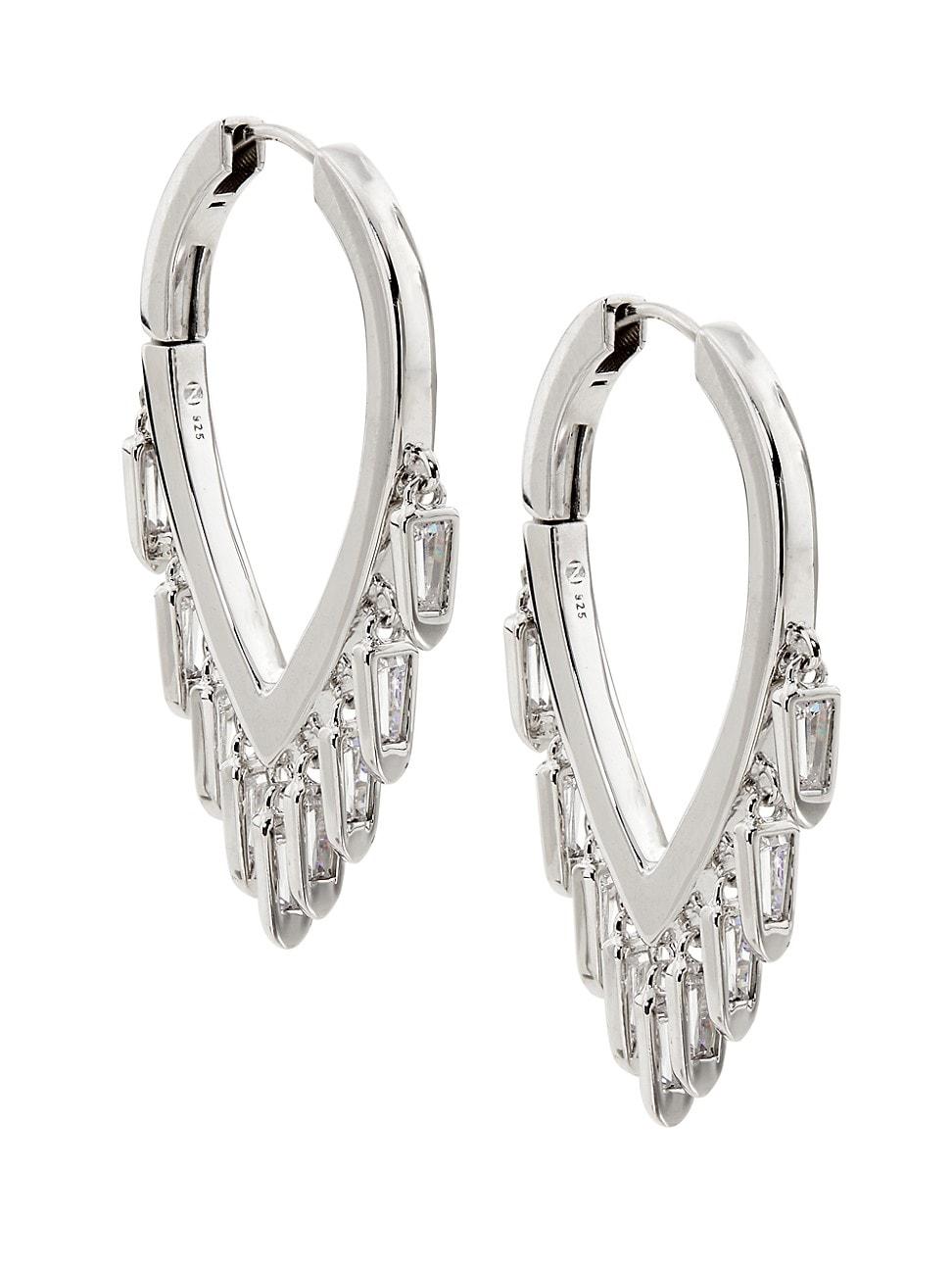 Adriana Orsinis small Sunny shaky hoop earrings feature playful cubic zirconia fringe, adding a touch of sparkle and shine. This style is available in rhodium-plated and 18K gold-plated sterling silver. Cubic zirconia 18K gold-plated sterling silver Rhodium-plated sterling silver Hinge post back Imported SIZE About 1.5 L x 0.2 W. Fashion Jewelry - Adriana Orsini > Adriana Orsini > Saks Fifth Avenue > Barneys. Adriana Orsini. Color: Rhodium.