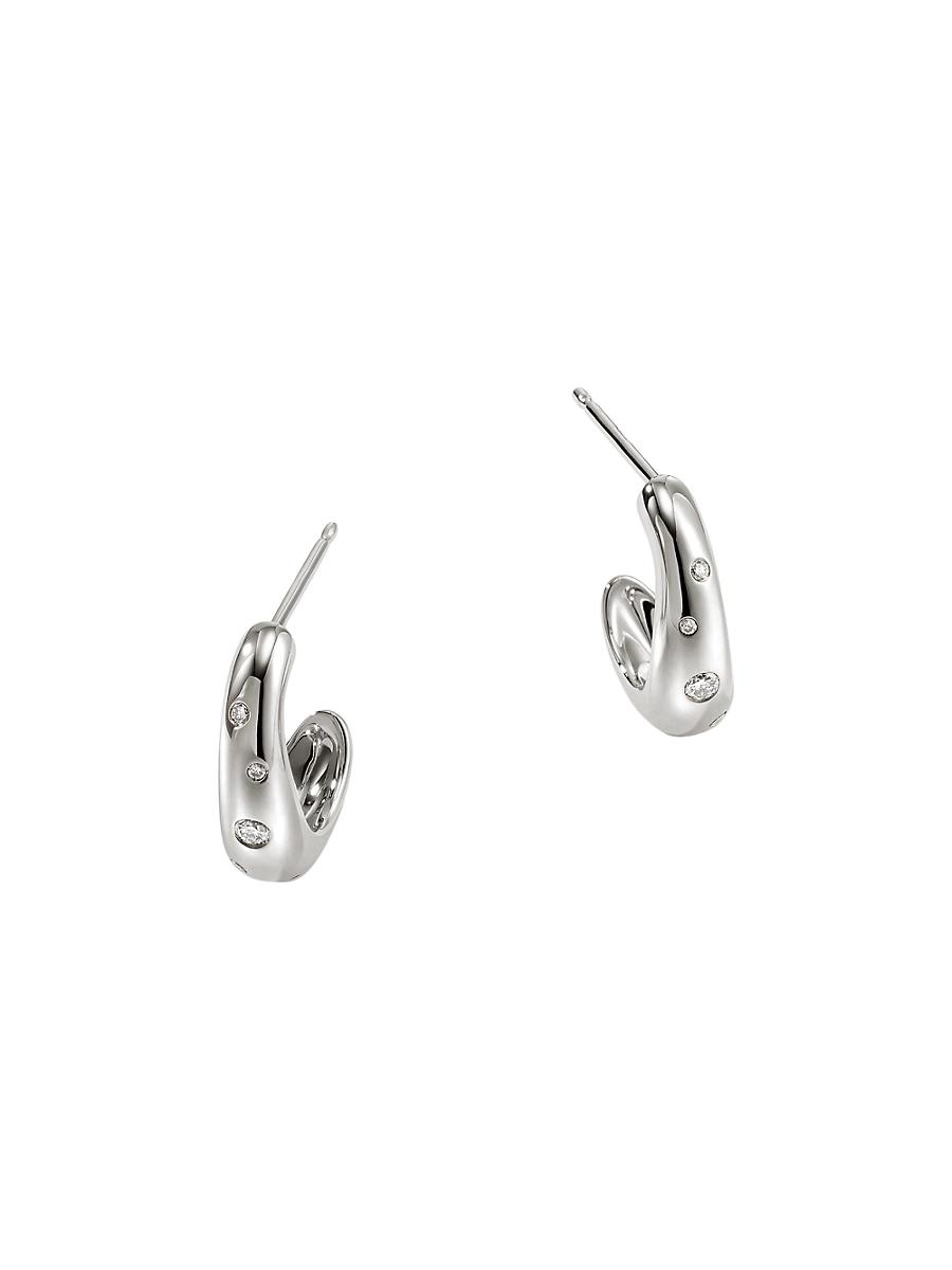 From the Surf Collection. Featuring a wavy silhouette, John Hardys hoop earrings are handcrafted of sterling silver flush-set with shimmering round diamonds. Diamonds, 0.12 tcw Diamond color grade: I-J Diamond clarity grade: I1 Sterling silver Post back Imported SIZE About 0.61L. Fashion Jewelry - John Hardy > John Hardy > Saks Fifth Avenue > Barneys. John Hardy. Color: Silver.