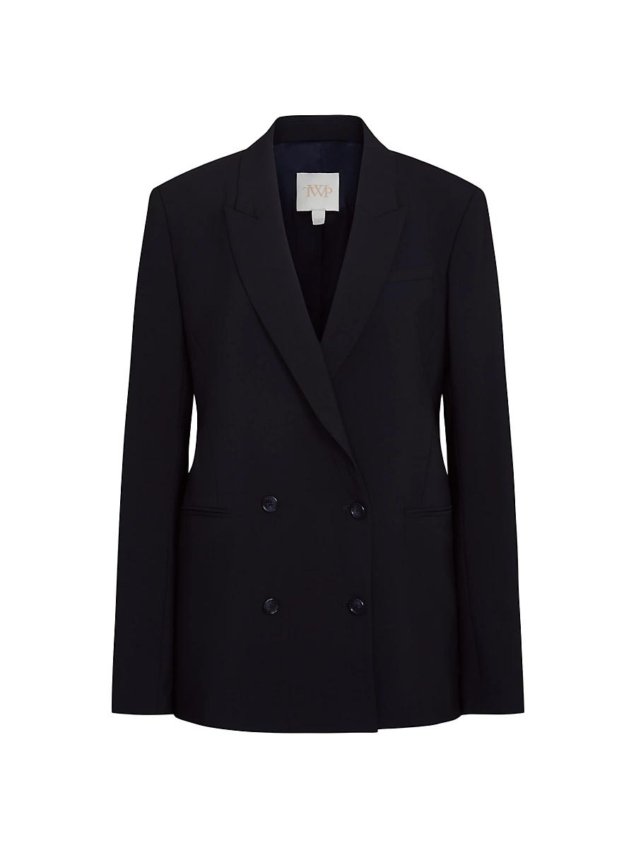 TWPs Tabitha double-breasted blazer is crafted of stretch cotton and wool. Notched lapels Long sleeves, button cuffs Chest and side welt pockets Double-breasted button closure 58% cotton/40% wool/2% elastane Dry clean Made in USA SIZE & FIT About 29 from shoulder to hem Model measurements: 510 tall Model is wearing a US size Small ABOUT THE BRAND New York-based label TWP offers modern, effortless takes on go-to wardrobe staples. On a mission to democratize luxury, founder Trish Westcoat Pound, of Haute Hippie fame, focuses on high-quality details and subtle-yet-alluring silhouettes to create elevated, everyday pieces-all made in the U.S. with fabrics sourced from Italy. Contemporary Sportswear - Contemporary Lifestyle > Twp > Saks Fifth Avenue > Barneys. TWP. Color: Midnight. Size: XL.