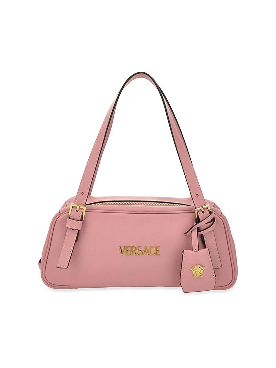 Made in Italy, this shoulder bag from Versace is crafted of leather and designed with adjustable shoulder straps. Adjustable shoulder straps Top zip closure Leather Lining: polyester Made in Italy SIZE About 10.6W x 4.7H x 3.9D Adjustable shoulder straps: about 8 drop ABOUT THE BRAND Founded in 1978, Versace is instantly recognizable by the signature Medusa head logo, chosen by founder Gianni Versace for its Greek symbolism. The Italian label is known for its luxe, bold clothing and accessories-think gilding, oversized logos and punchy prints. Since taking over artistic direction, Giannis sister Donatella Versace has maintained the brands strong identity, with a renewed vision to give customers the ultimate freedom to express themselves. Handbags - Italian Designers > Versace > Saks Fifth Avenue > Barneys. Versace. Color: English Rose.