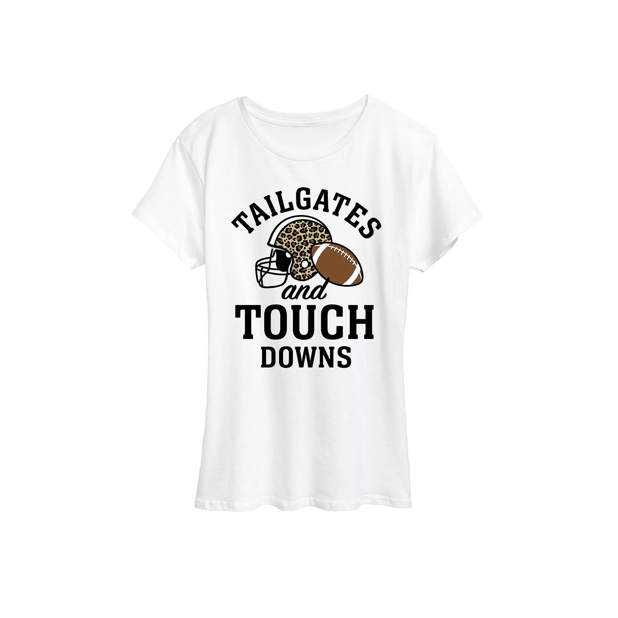 White Tailgates & Touchdowns Graphic Tee - Women, Juniors, Plus & Petite Plus. Bring an expressive touch to your casual collection with this graphic tee that features a football-inspired graphic. Full graphic text: Tailgates and touchdowns.Size S: 26 long from high point of shoulder to hemSize & fit: Relaxed-fit garment with a slightly longer hem. Fits true to size.100% cottonMachine wash; tumble dryImported, screen printed in the USA