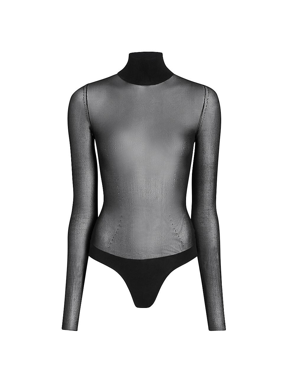 Designed as a poignant tribute to her late mother, Catherine Holsteins Khaite collection captures a moody, evocative atmosphere inspired by the late 80s and early 90s. The assortment features bold silhouettes with exaggerated shoulders and luxurious materials like leather and shearling, reflecting a sophisticated, dressed-up sensibility. This sheer Tallin bodysuit from Khaite is styled with long sleeves and a solid turtleneck. Turtleneck Long sleeves Snap closure at seat 72% viscose/27% polyamide/1% elastane Dry clean Made in Italy SIZE & FIT Model measurements: 510 tall Model is wearing a US size Small. Designer Lifestyle - Khaite > Khaite > Saks Fifth Avenue > Barneys. Khaite. Color: Oxblood. Size: XS.