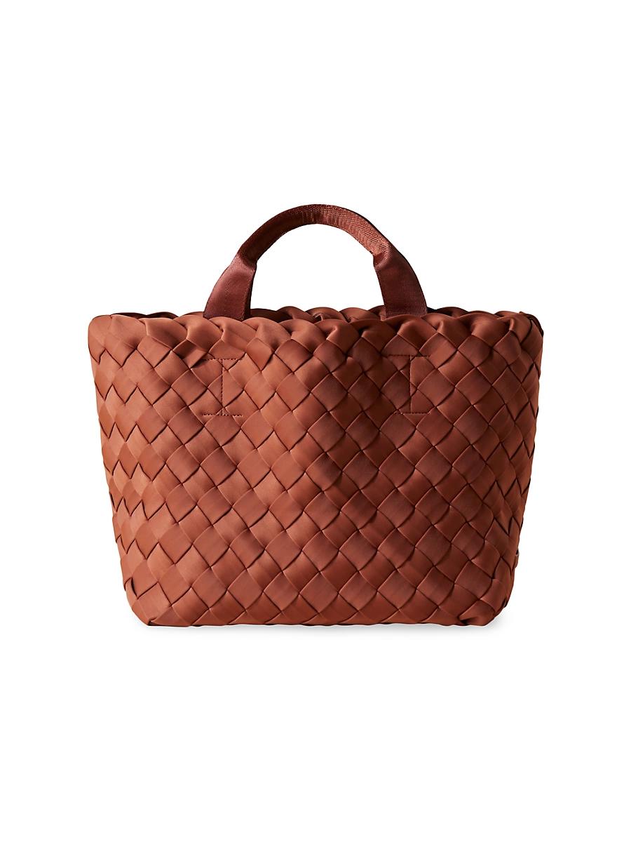 The new classic. Our signature shape in a wide weave for a modern and sleek take on the classic woven tote. Matching interior zip pouch included. Open top Handwoven neoprene (polyester) Imported Top Handles: 4 drop 17 W x 9.5 H x 7 D. Lsd Handbags - Handbag/accessories Lsd > Naghedi > Saks Fifth Avenue > Barneys. Naghedi. Color: Cashmere.