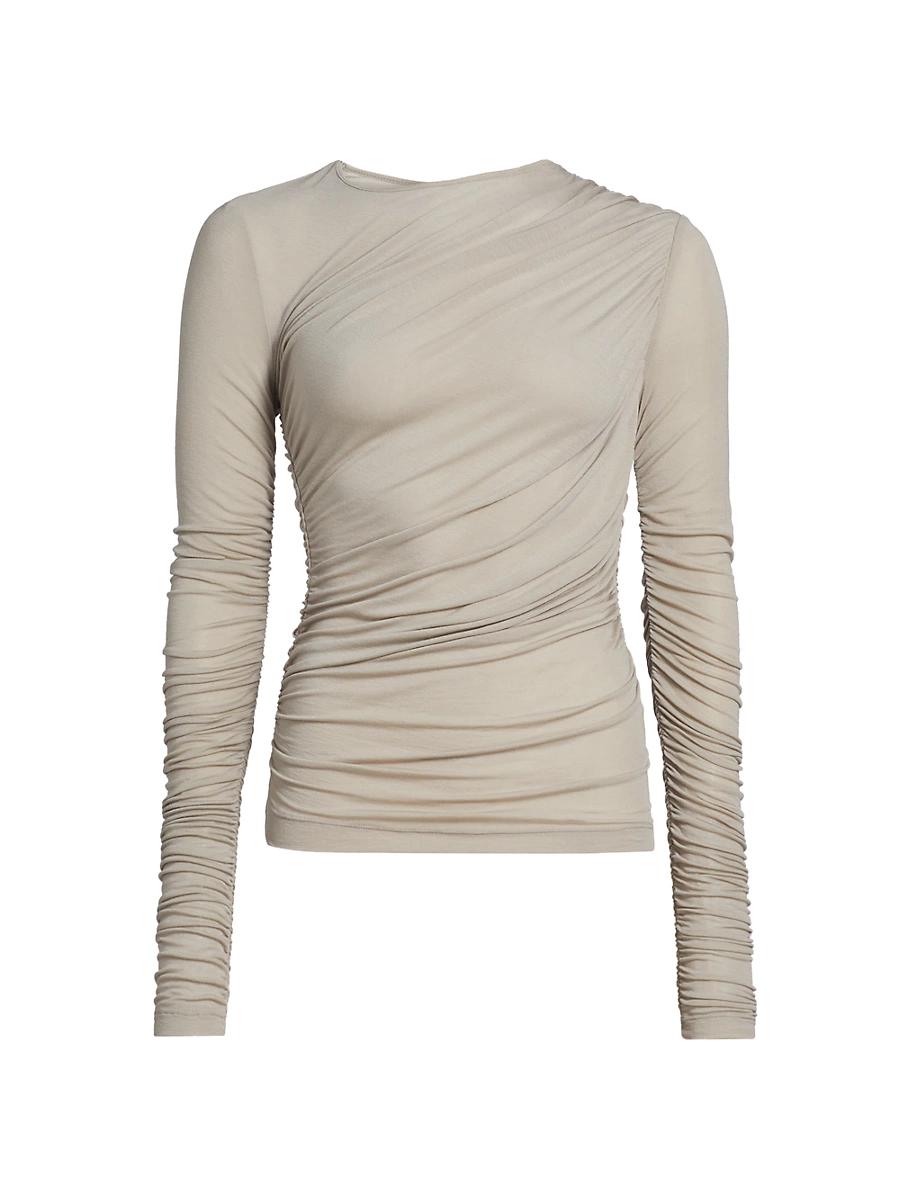 Agoldes Tania shirt is designed with a crewneck and ruched detailing. Crewneck Long sleeves Gathered bodice Pulls over 94% lyocell/6% spandex Machine wash Made in USA SIZE & FIT About 22.25 from shoulder to hem Model measurements: 510 tall Model is wearing a US size Small. Contemporary Sportswear - Denim And Bottoms > Agolde > Saks Fifth Avenue > Barneys. Agolde. Color: Black. Size: Small.