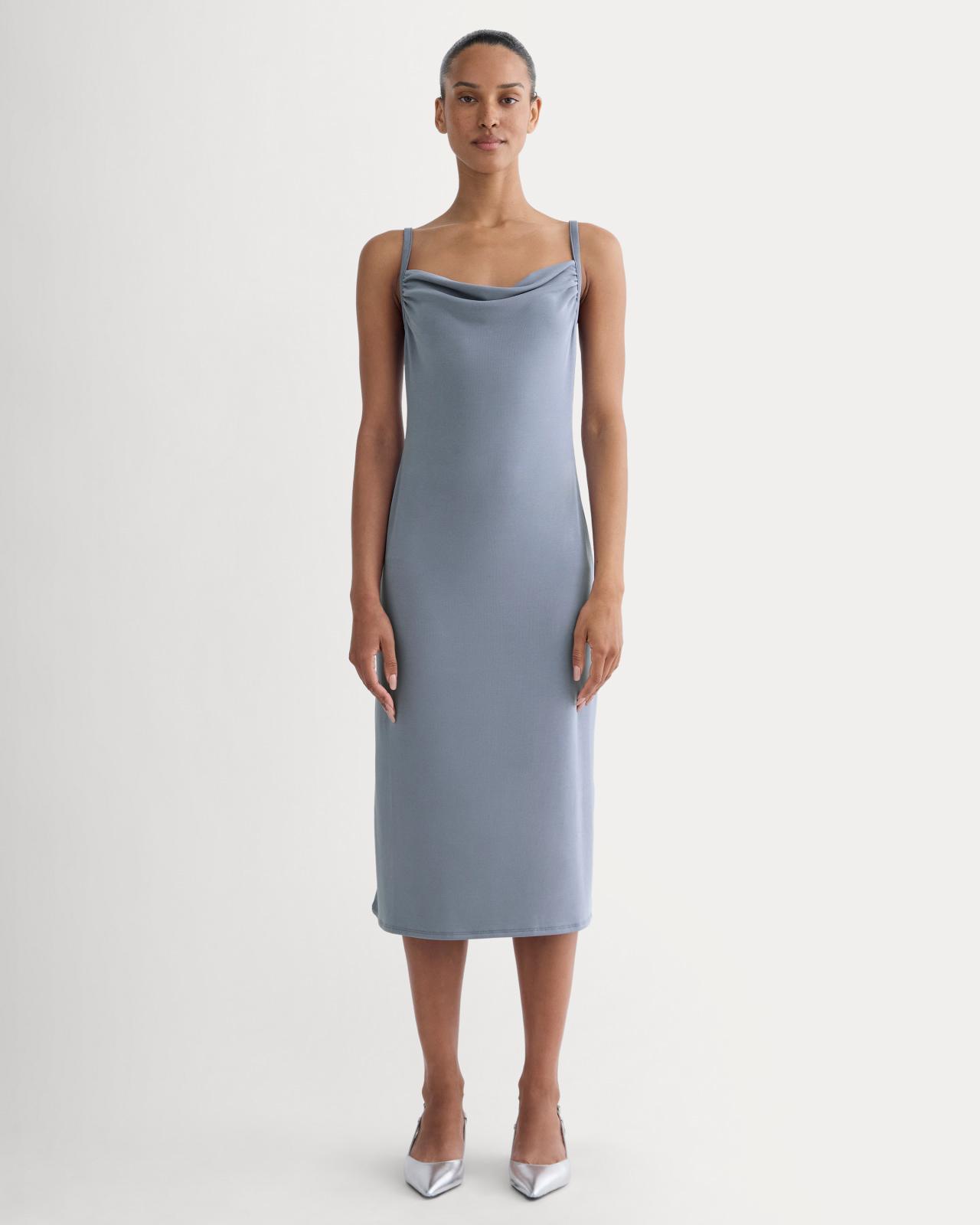 Featuring a cowl neckline, this tank midi dress shapes your waist, but doesn’t make a fuss about it. The buttery-soft, slinky fabric drapes like a dream—perfect for when you want to look effortlessly elevated. Channeling ‘90s minimalism, pair it with sleek accessories and let the dress do the talking.