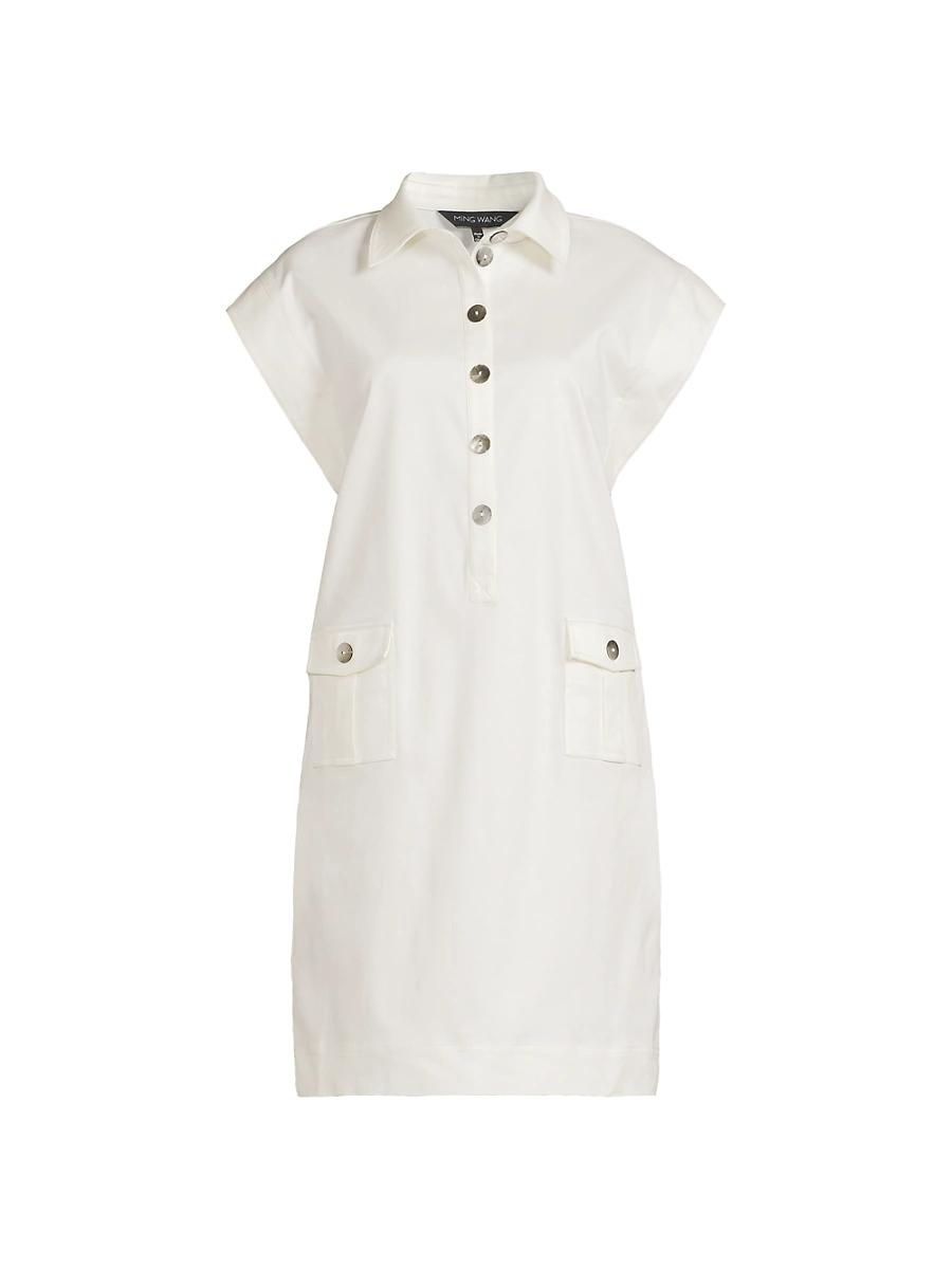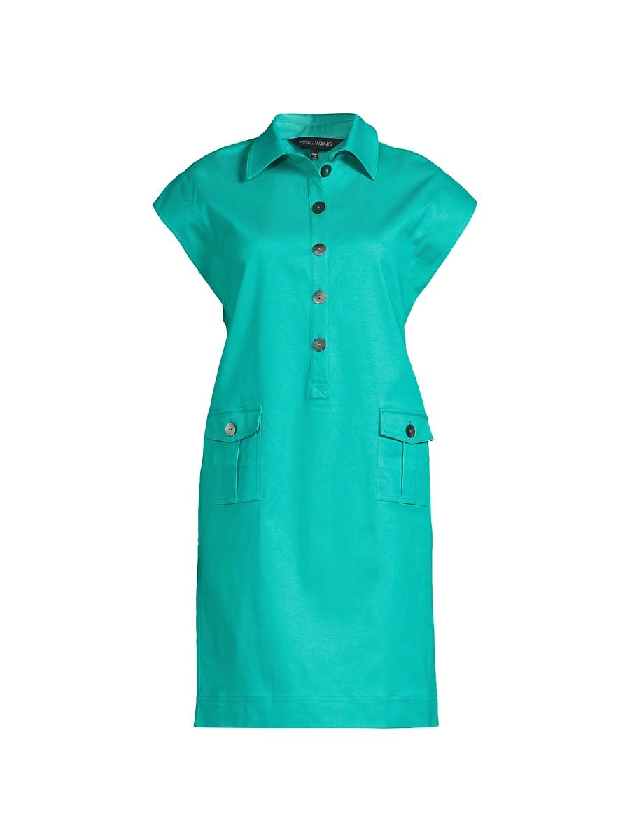 From the Tanya Foster x Ming Wang Collaboration. This Ming Wang minidress is crafted of stretch cotton sateen and highlights intricate mother-of-pearl-inspired buttons at the front placket and side flap-patch pockets. Spread collar Cap sleeves Side button-through flap-patch pockets Button-front closure 48% cotton/ 49% tencel/ 3% spandex Hand wash Imported SIZE & FIT About 37 from shoulder to hem. Salon Z - Salon Z Collections > Ming Wang > Saks Fifth Avenue > Barneys. Ming Wang. Color: Emerald Awe. Size: XXS.